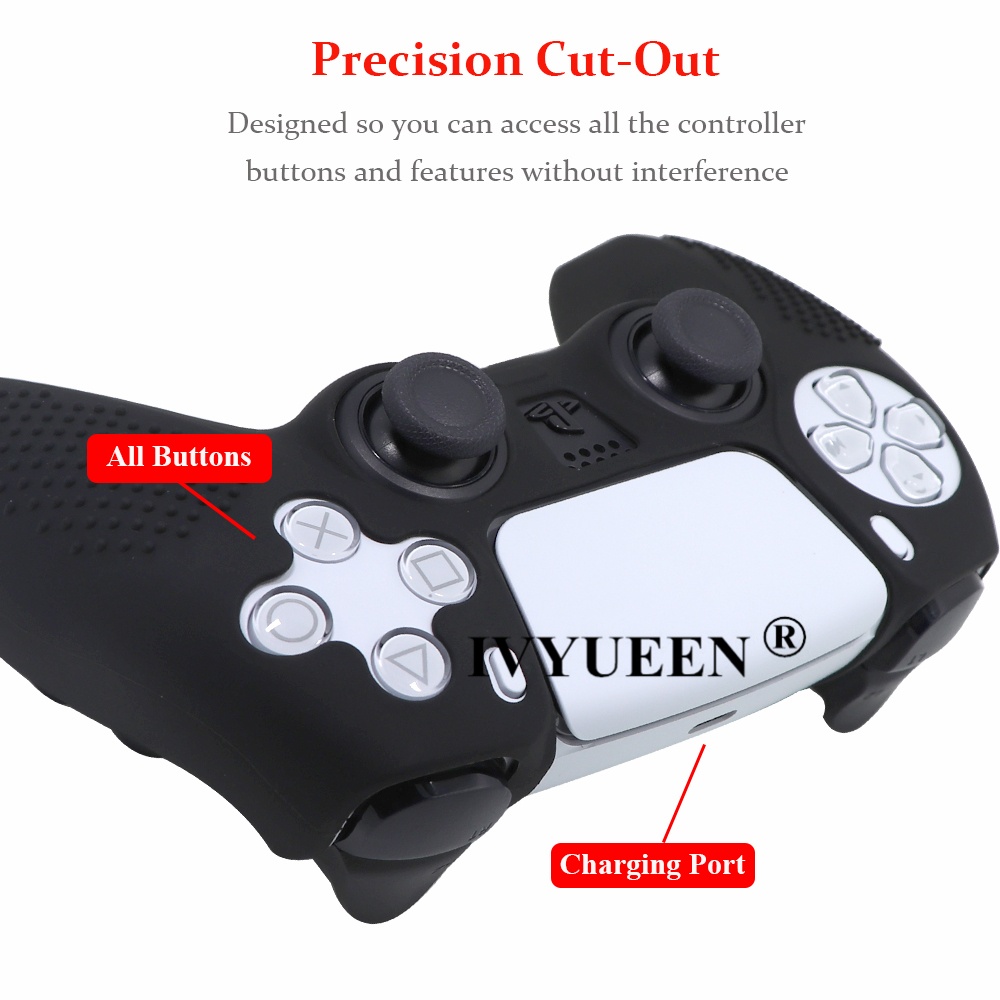 IVYUEEN Anti-slip Silicone Cover Skin for Sony PlayStation Dualshock 5 PS5 Controller Case Thumb Stick Grip Cap for DualSense Wireless Controller