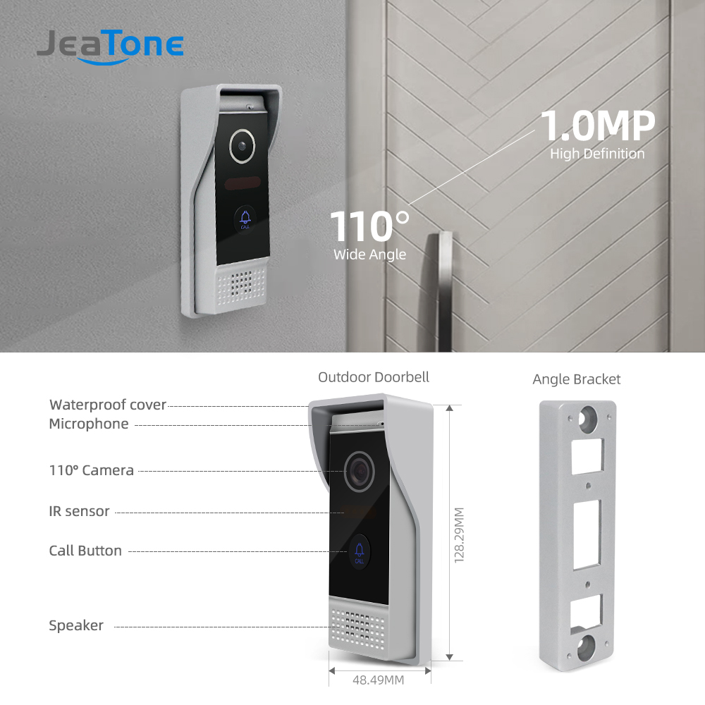 JeaTone 4-Wired Video Door Phone 1200TVL Door Bell IP65 Waterproof pinhole lens Call Panel Video IR Night Vision Outdoor