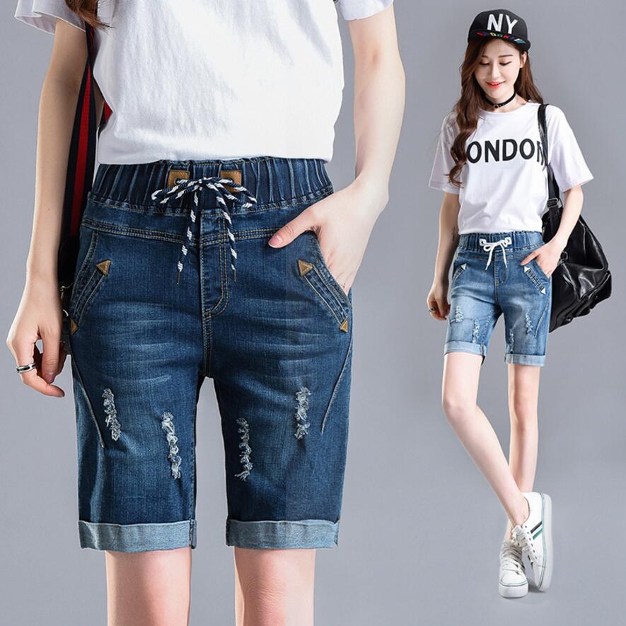 Jeans For Women Summer Kenn Length Pants Elastic High Waist Loose Jeans Hole Crimping Denim Shorts