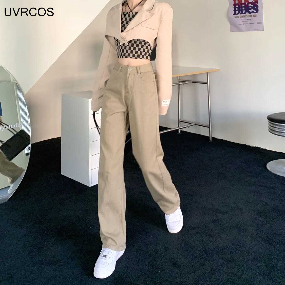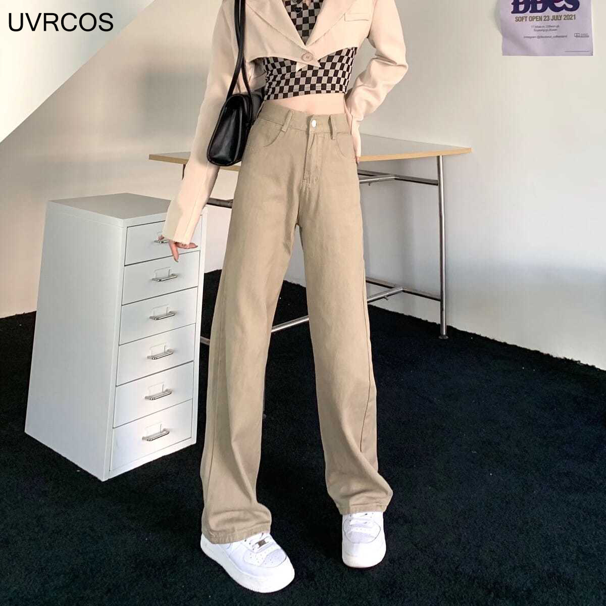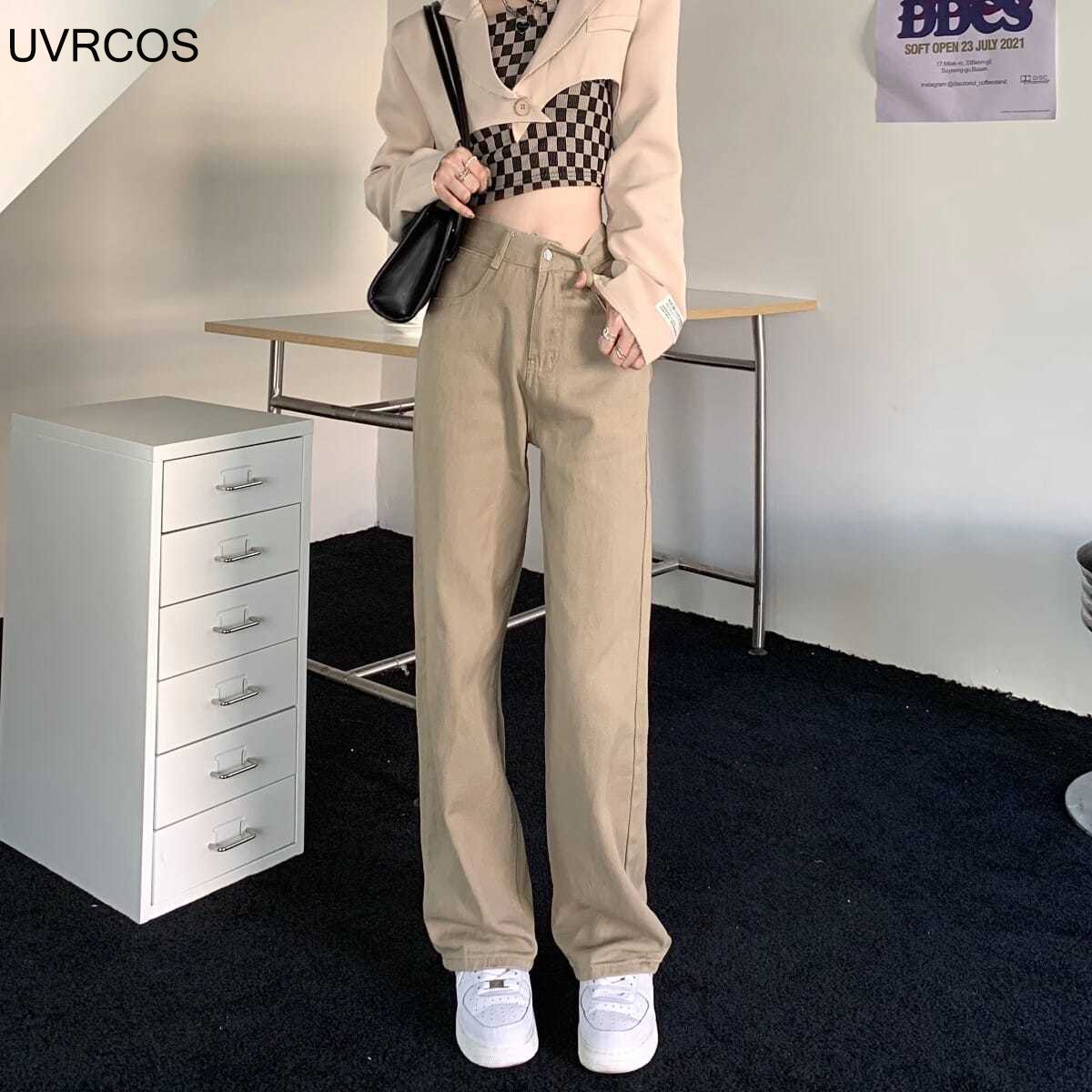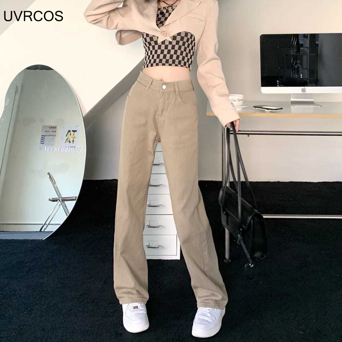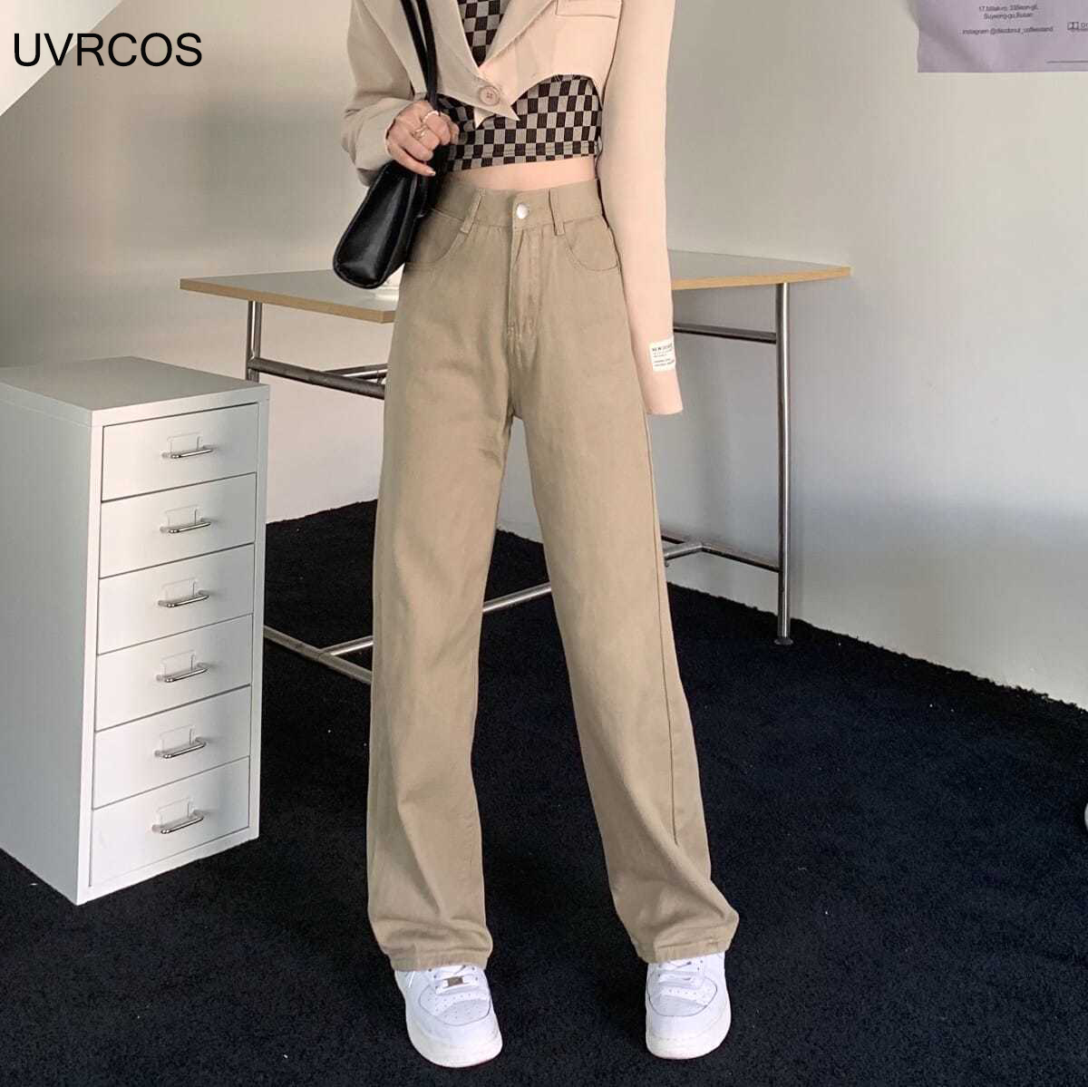 Jeans Khaki Pants Female Japanese Solid Color High Waist Straight Loose Jeans Casual Cotton Loose Women's Jeans