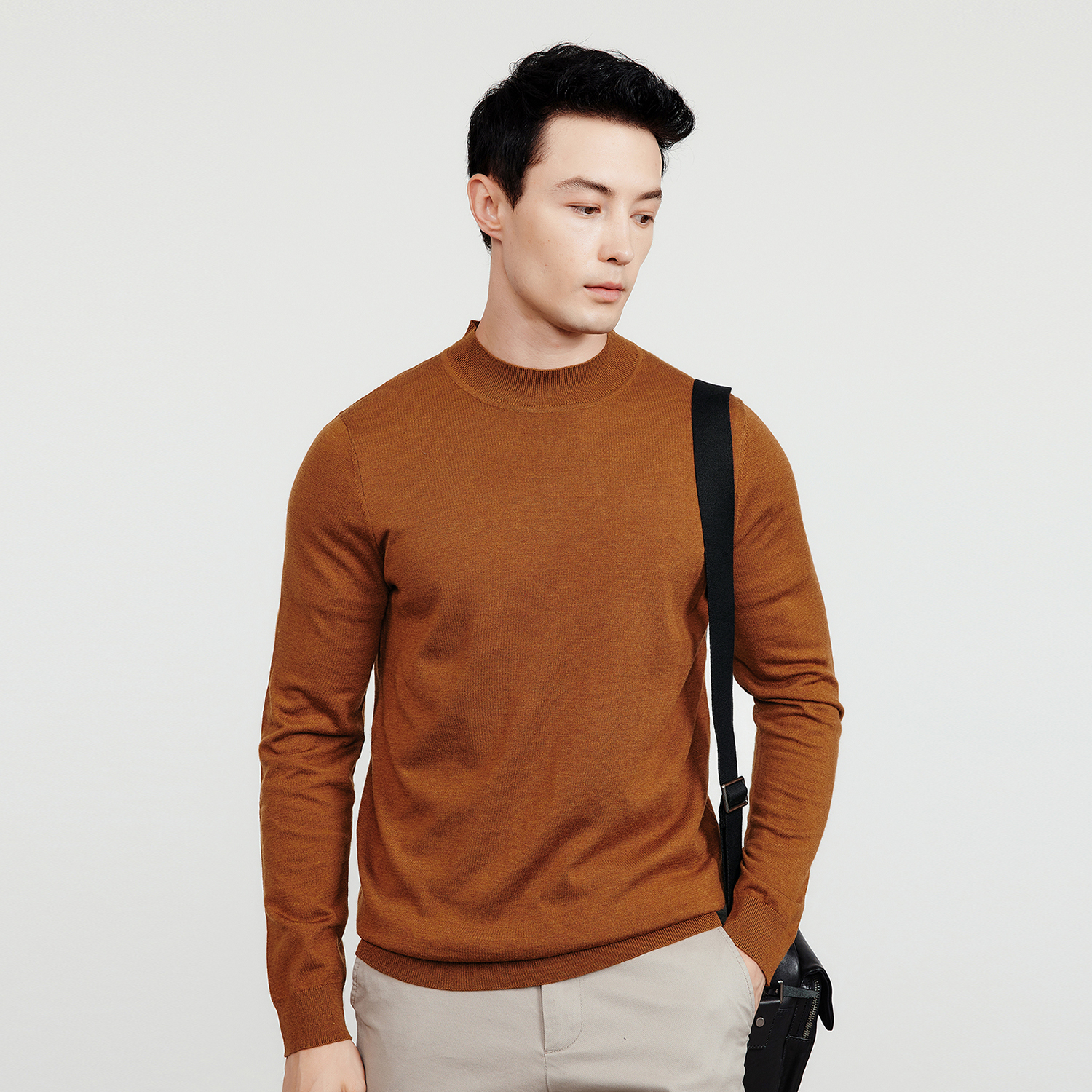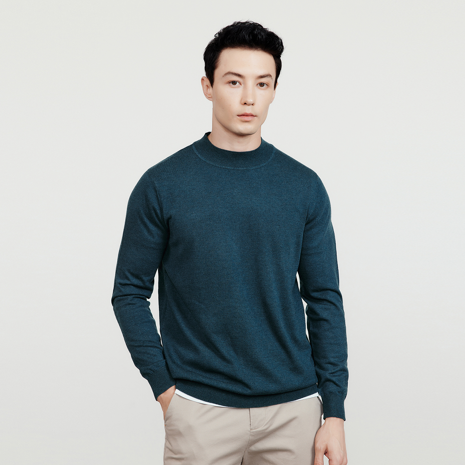 KUEGOU Autumn Men Sweater Solid color Semi-high Collar High Slim Male Soft Knitted Blends Wool Warm 710