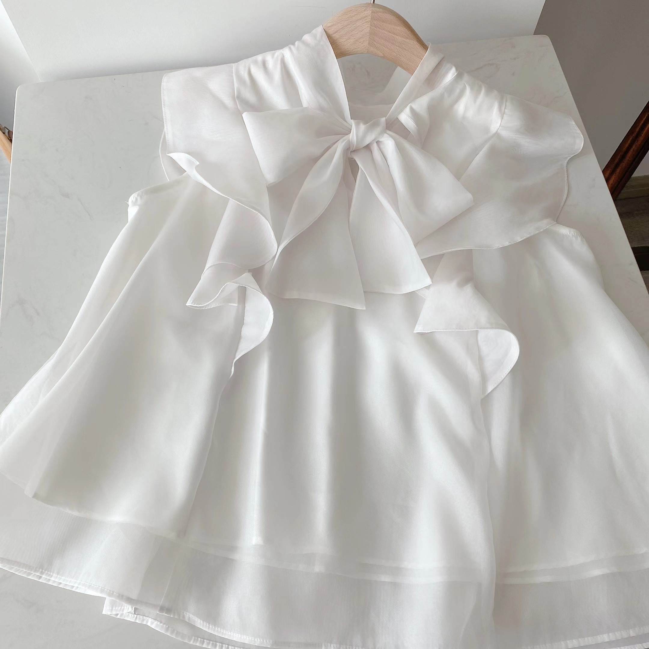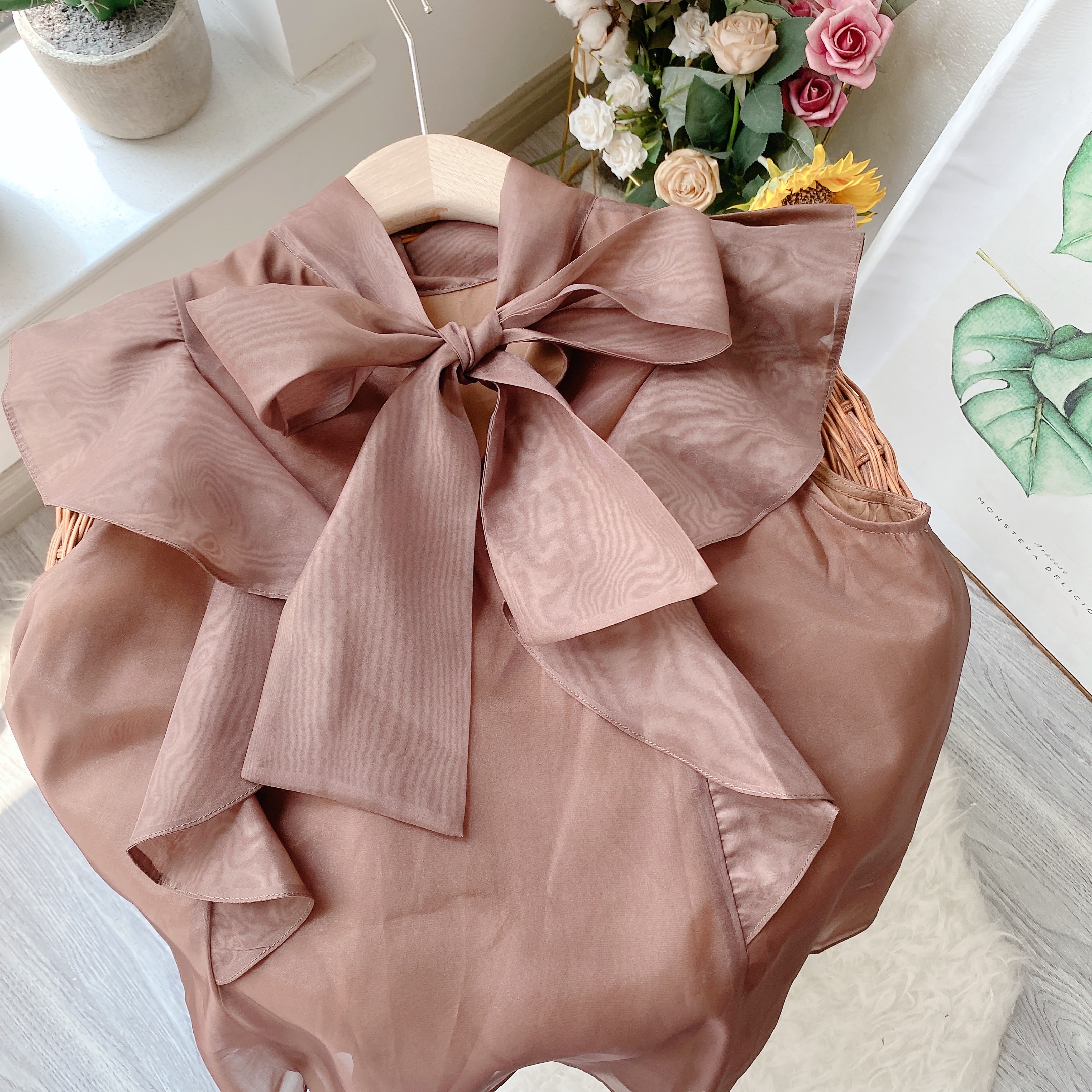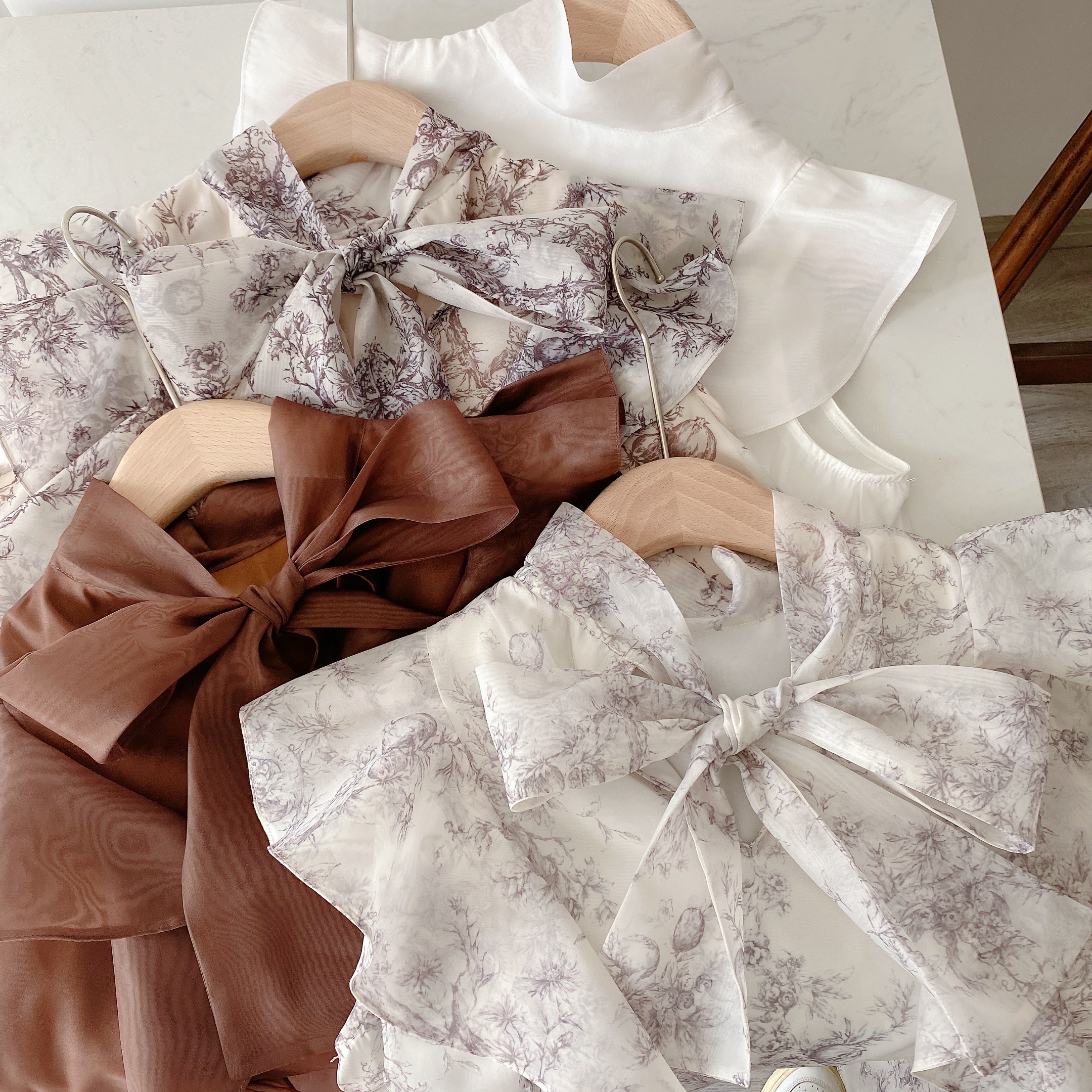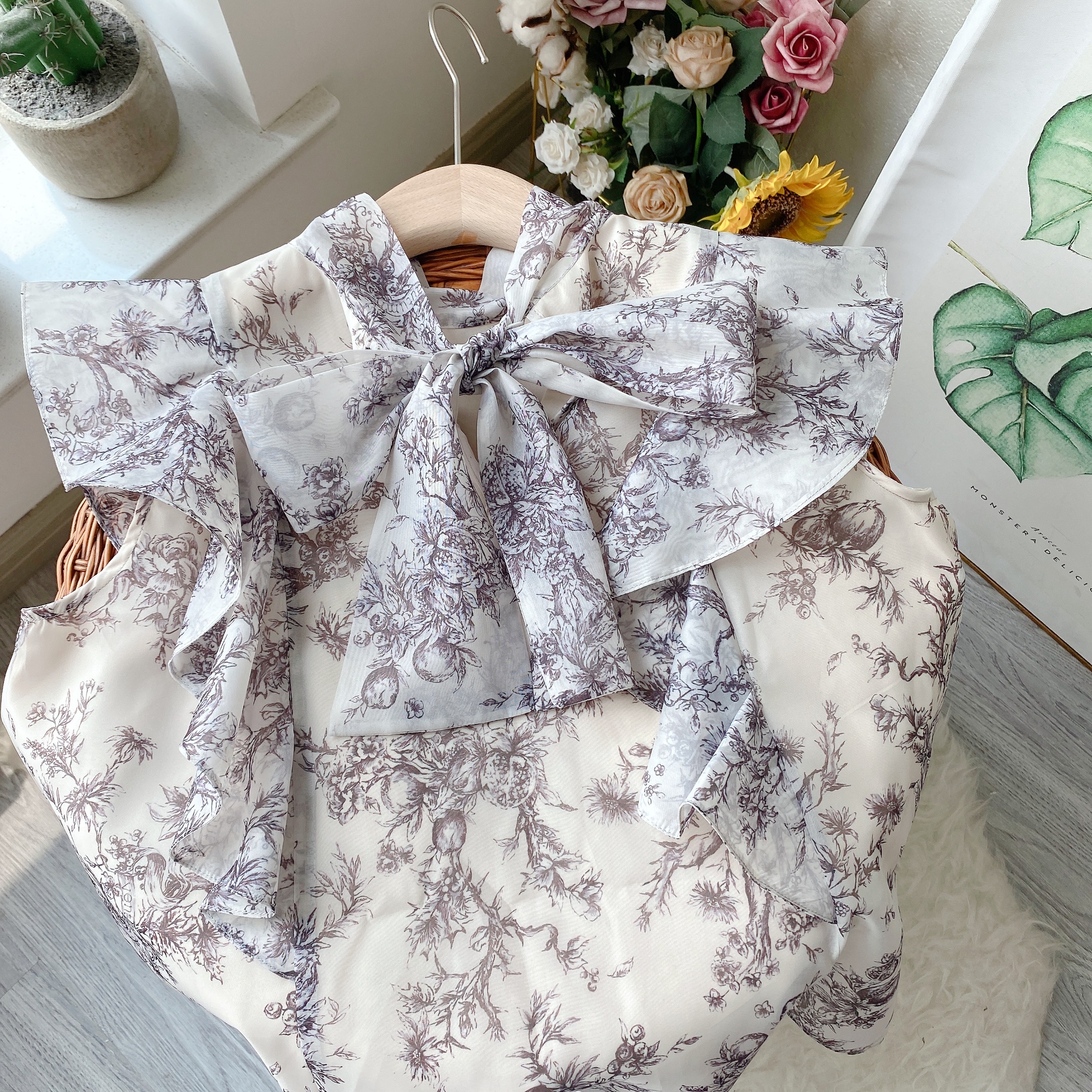 Kuzuwata Japanese Temperament Sweet Blouse Summer Shirt Stand Collar Lace Up Bowknot Print Flying Sleeve Mujer Blusa