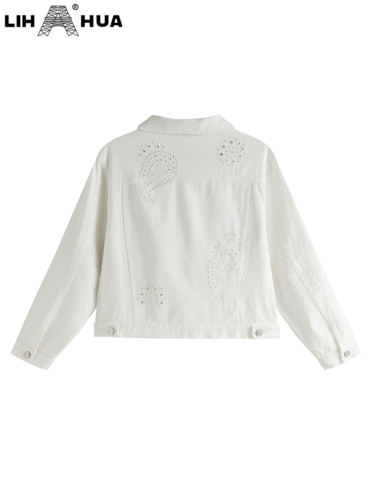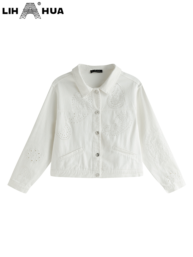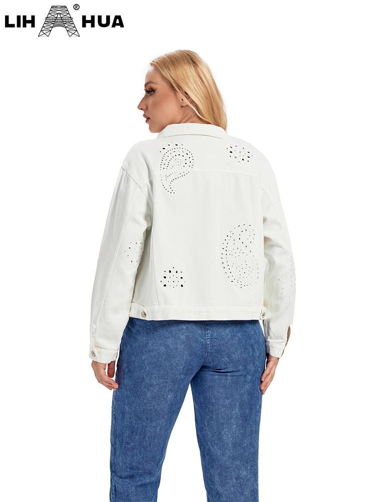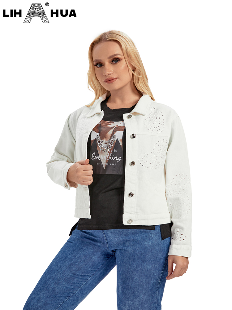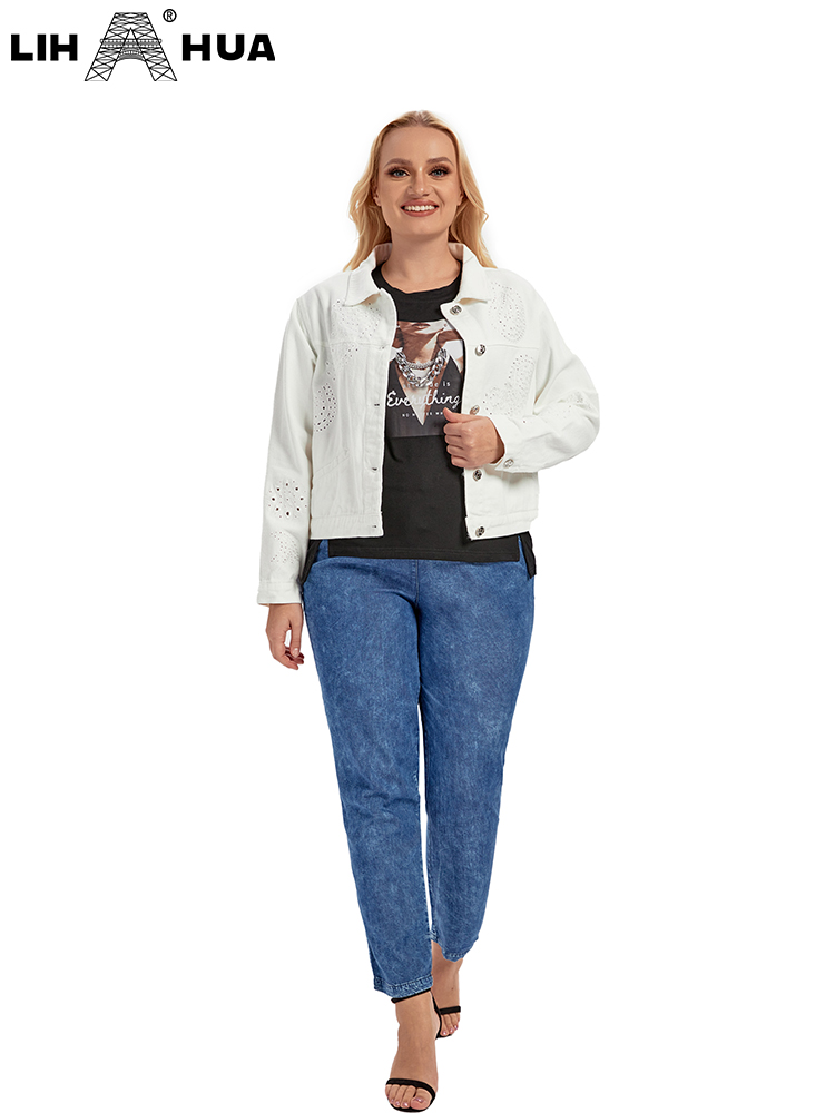 LIH HUA Women's Plus Size Denim Jacket Autumn Casual High End Stretch Button Long Sleeve Jacket