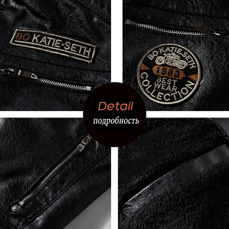 Leather Jacket Men Winter Fleece Motorcycle PU Leather Jacket Mens Stand Collar Casual Windbreaker Ropa De Hombre Slim Coat 7XL