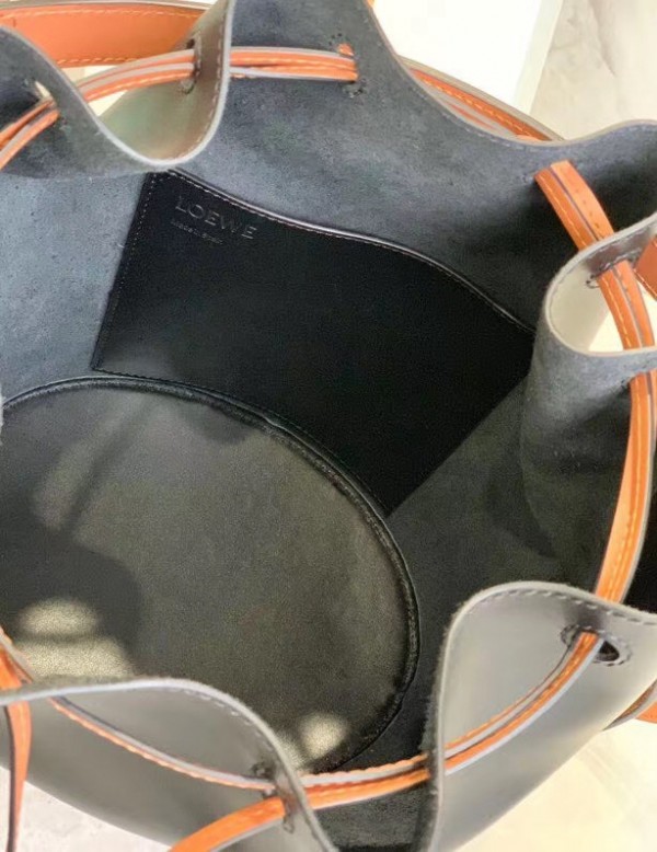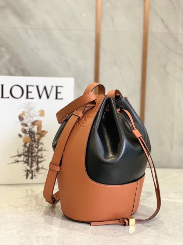 Loewe Medium Balloon Bucket Bag In Black/Tan Calfskin