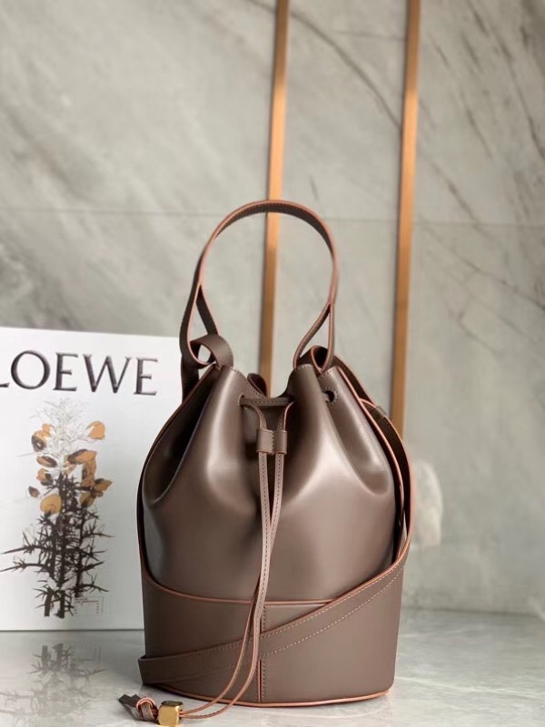 Loewe Medium Balloon Bucket Bag In Taupe Calfskin