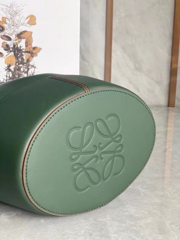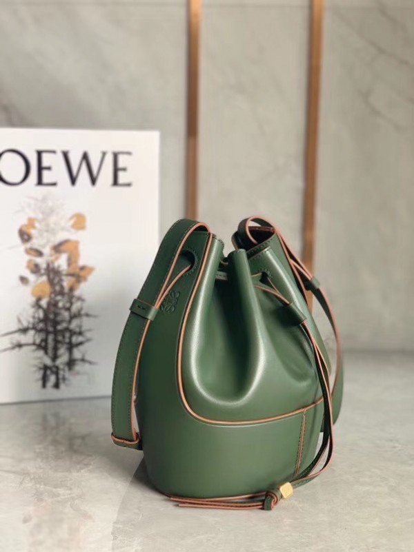 Loewe Small Balloon Bucket Bag In Khaki Calfskin