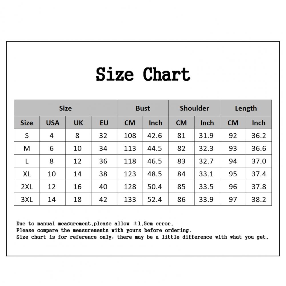[Our Size 2XL] Bust: 128cm/50.4", Length: 96cm/37.8", Shoulder: 85cm/33.5" (Approx.)