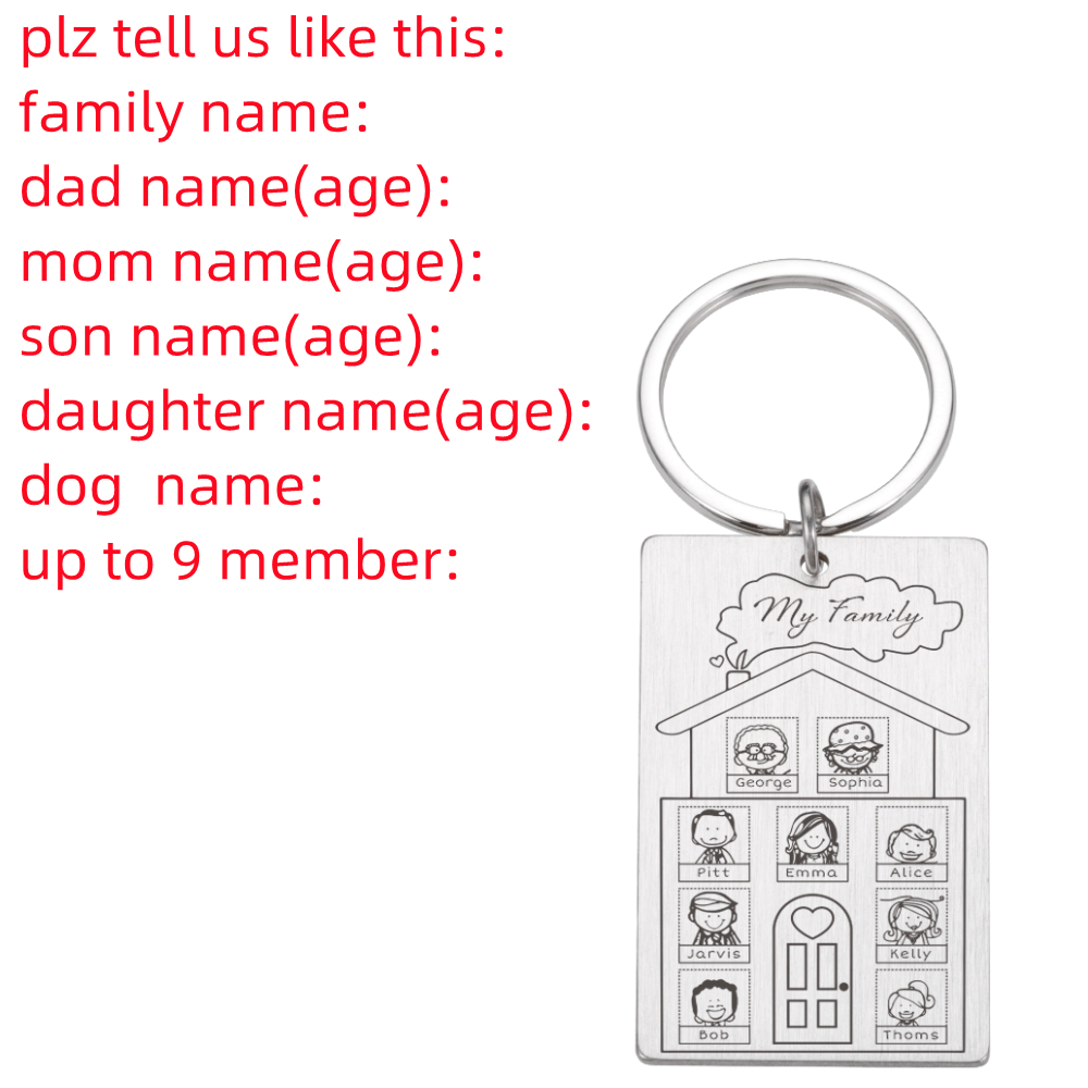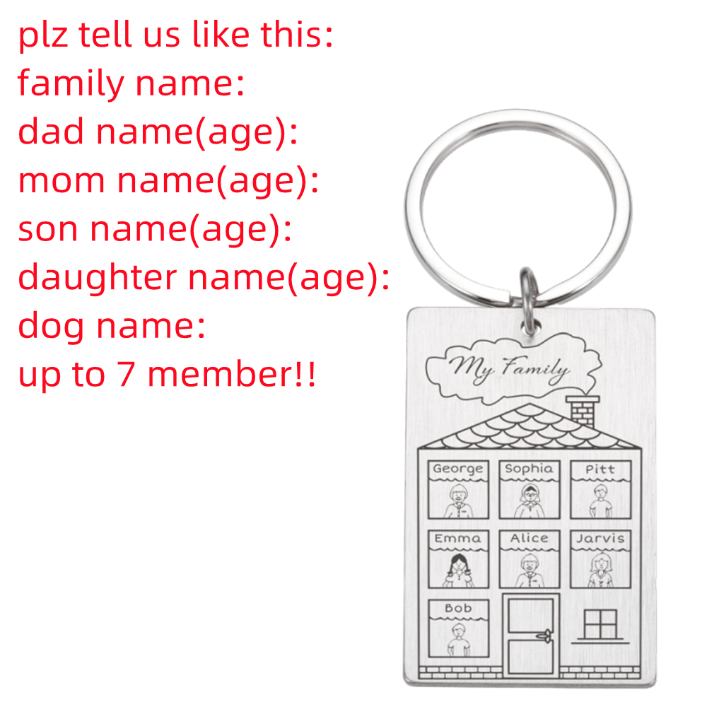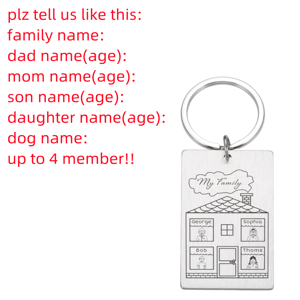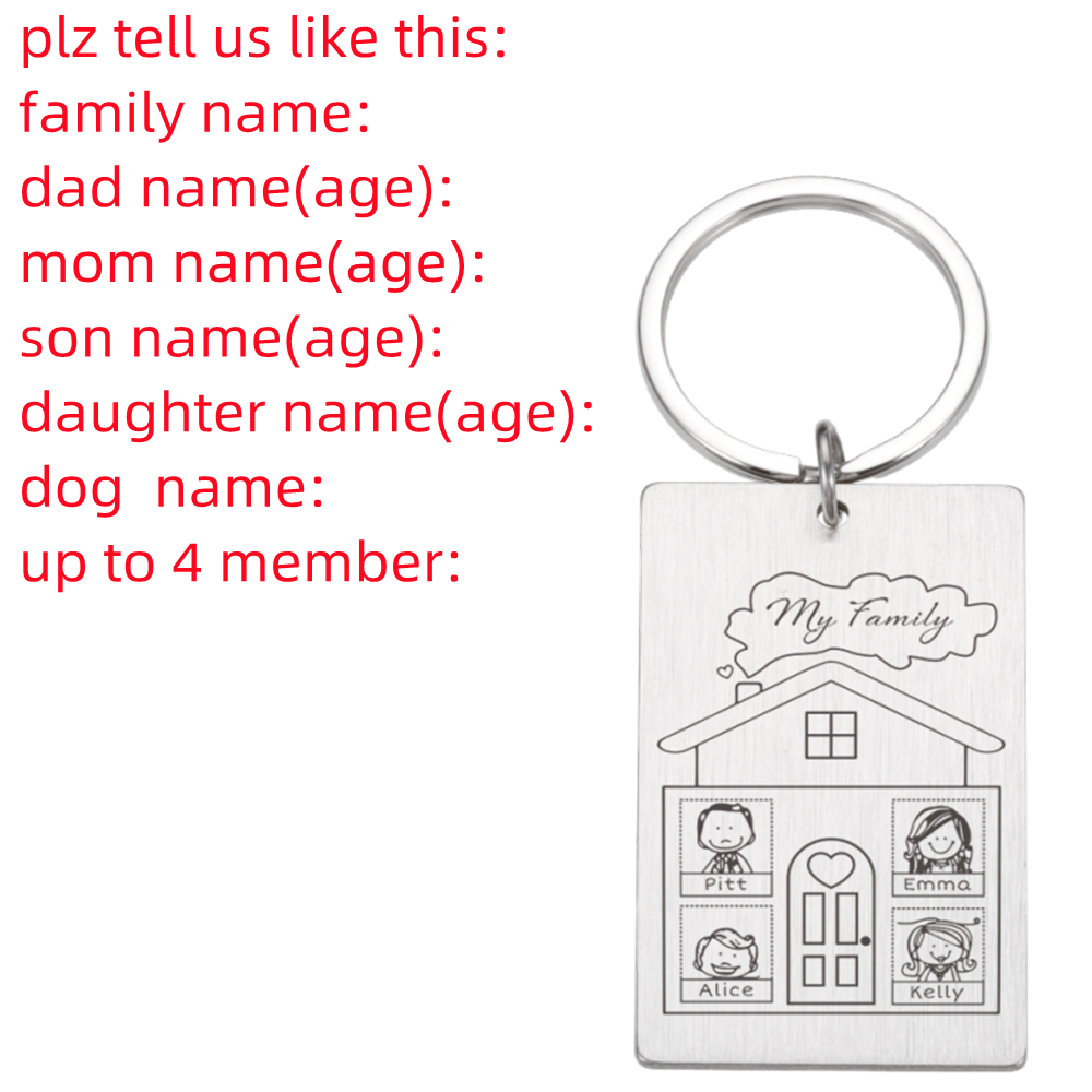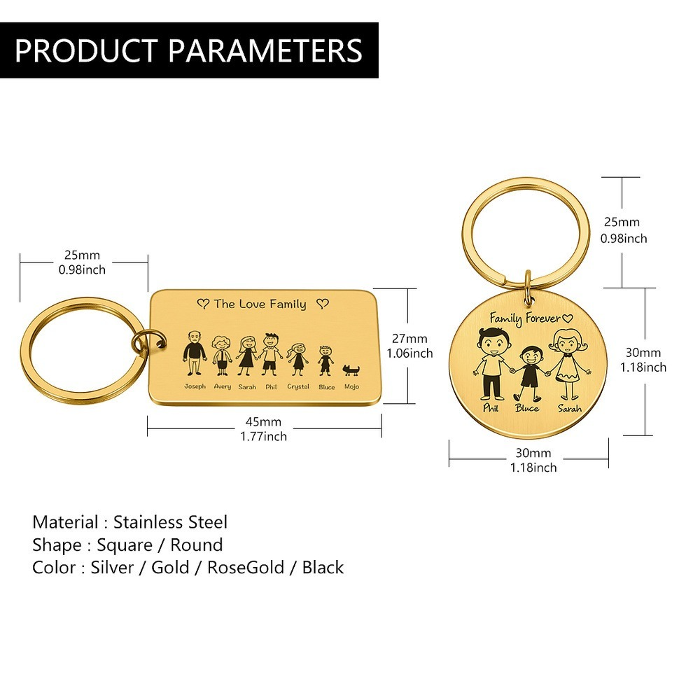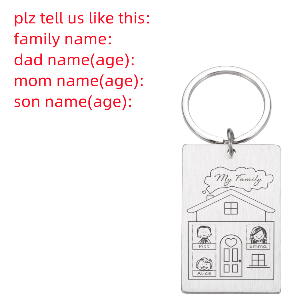 Feature2 : Engraved family Name Personalized keychain for father mother sister bo