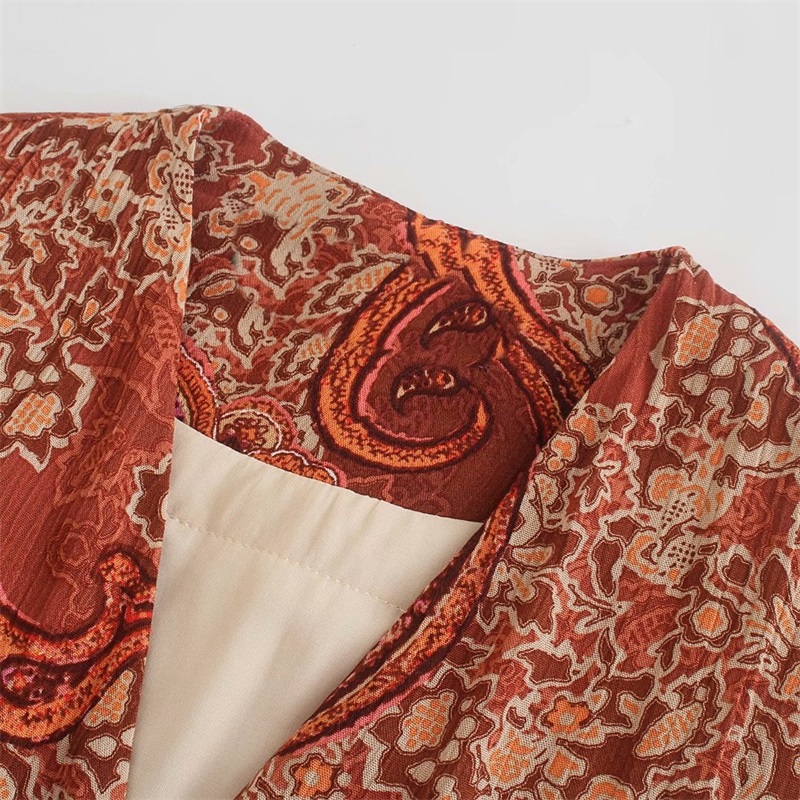 MESTTRAF Women With Belt Paisley Print Kimono Cotton Coat Vintage Long Sleeve Pockets Female Outerwear Streetwear