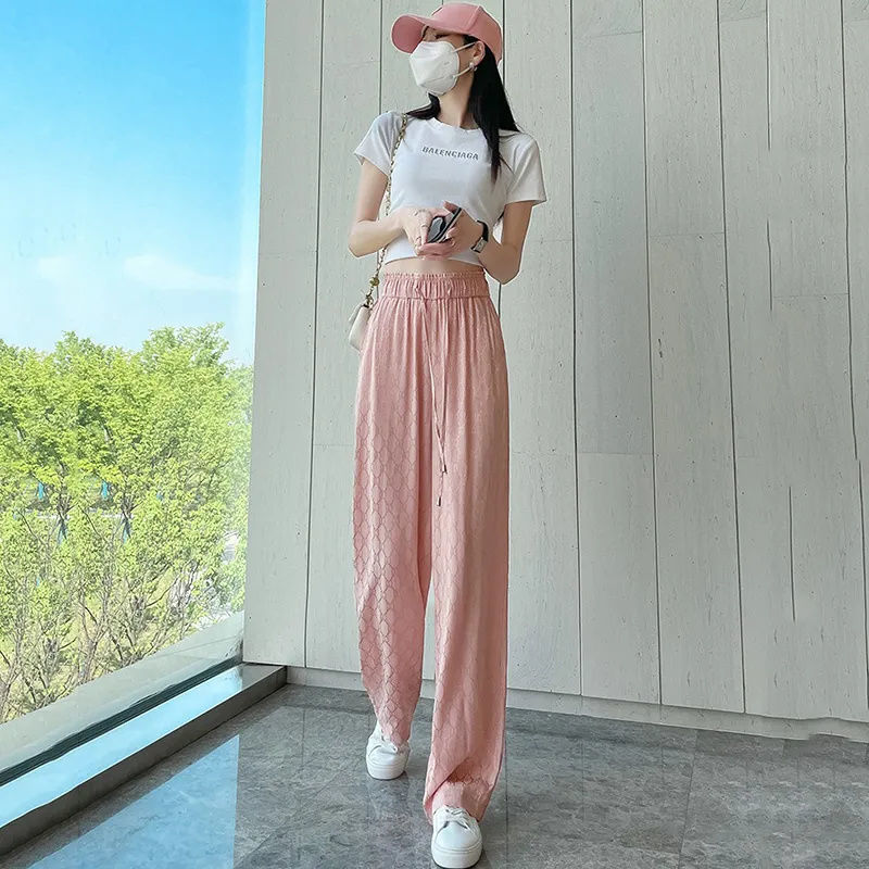 MINGLIUSILI Ice Silk Wide Leg Pants Womens Summer Thin Section High Waist Drape Loose Straight Pants Oversize Casual