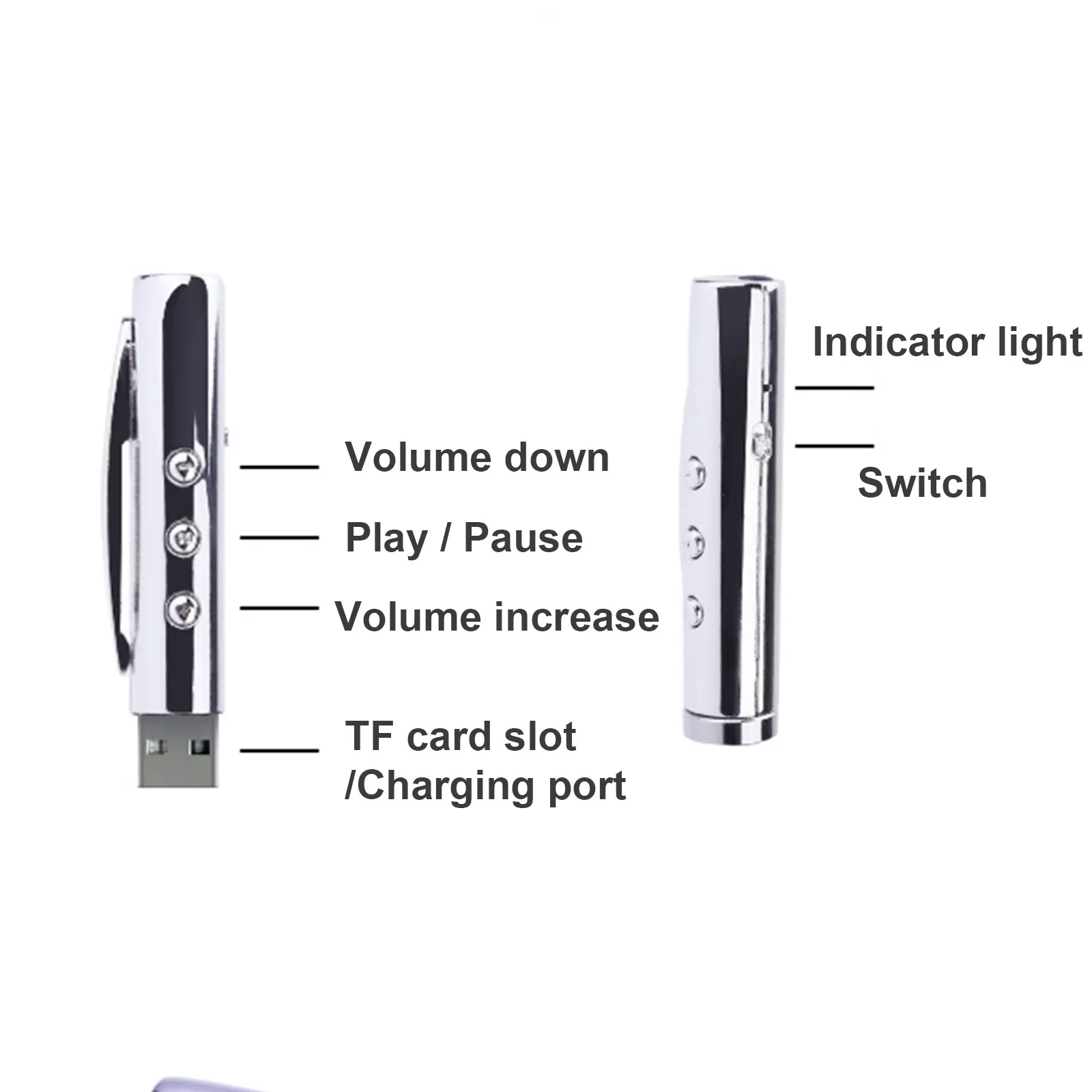 Portable USB Writable Pen MINI MP3 Player Supports 32GB TF Card Music Player