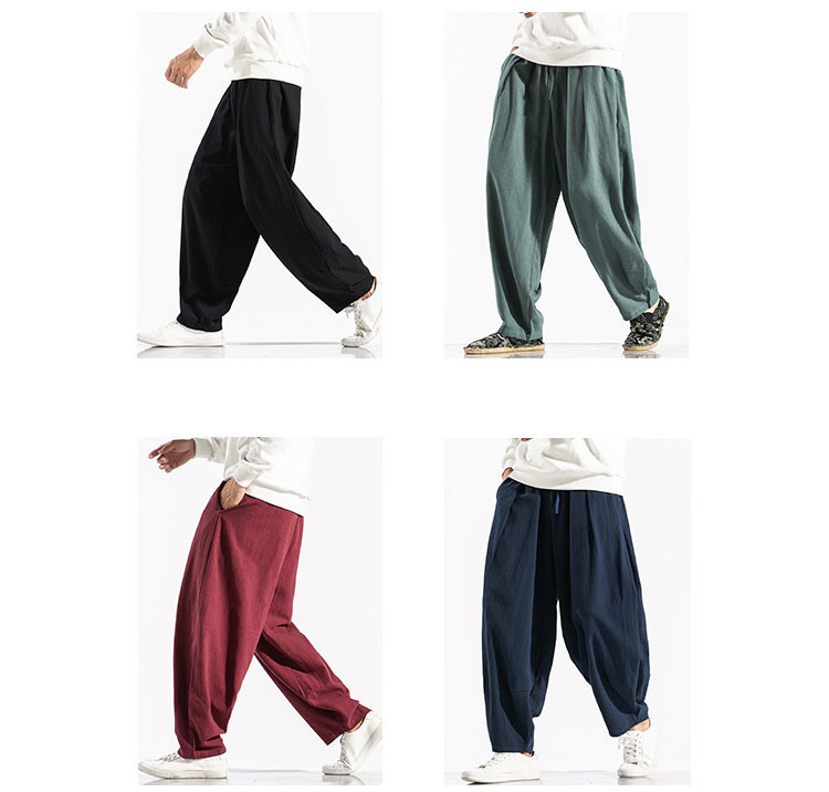 Men's Cotton Linen Loose Pants Male Summer Casual Solid Color trousers Wide Leg Pants Streetwear Plus Size M-5XL