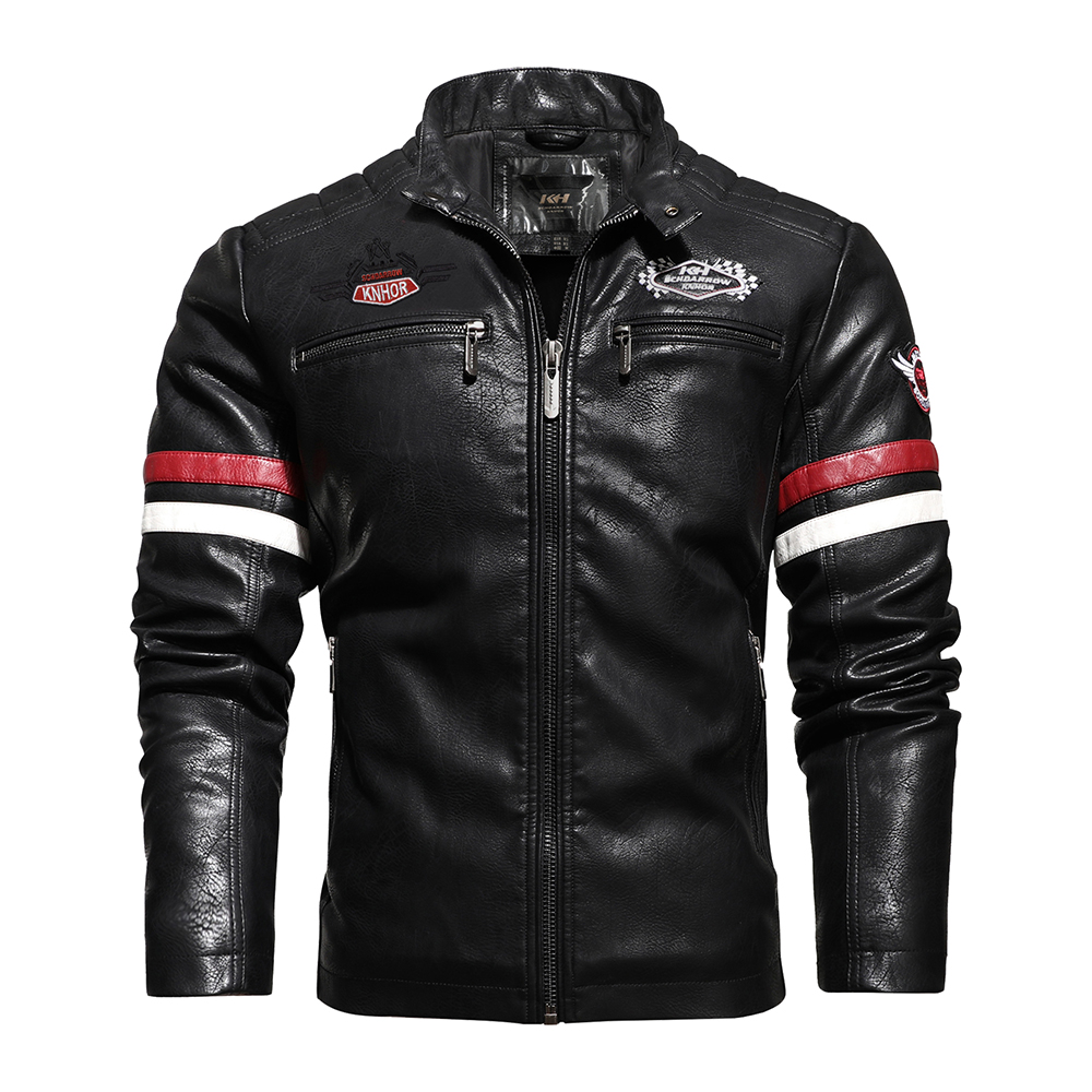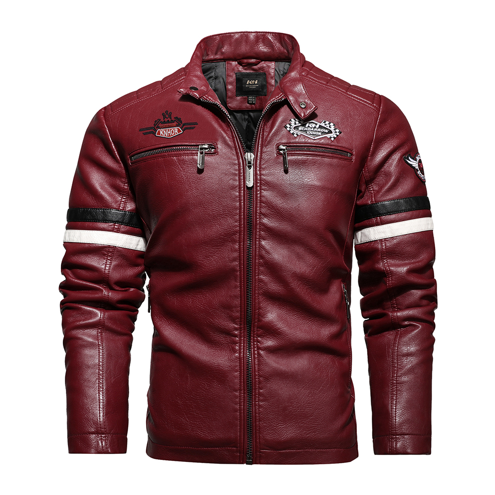 Mens Vintage Motorcycle Jacket Men Biker Leather Jacket Male Embroidery Bomber Coat Winter Fleece Pu Overcoat