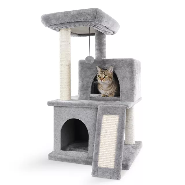 DURABLE & COMFORTABLE: Our cat tree is made of thick and environmentally friendly CARB-certified natural particle boards. The firm boxes and sturdy scratching posts are fully covered with natural sisal ropes that ensure the stability of the whole cat tree. It is worth