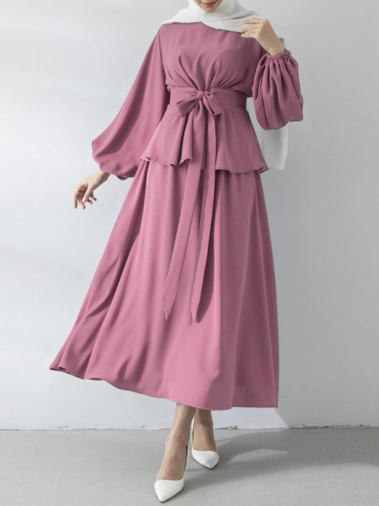 Muslim Sets Women Autumn Matching Sets ZANZEA Puff Sleeve Bllouses A-Skirts Female Marocain Turkish Tops Islam Clothing