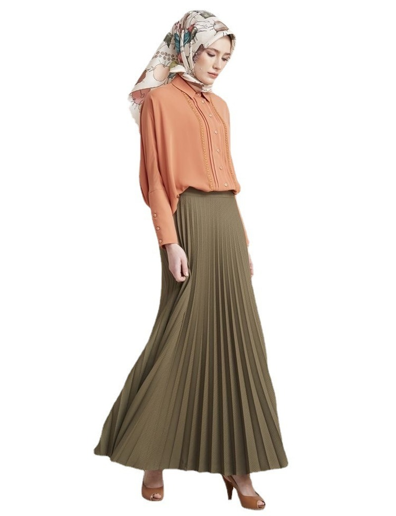 Muslim Skirt Women Modest Clothing Solid Big Swing Skirt Pleated Mopping Floor Middle Eastern Arab Long Elegant Women Skirts