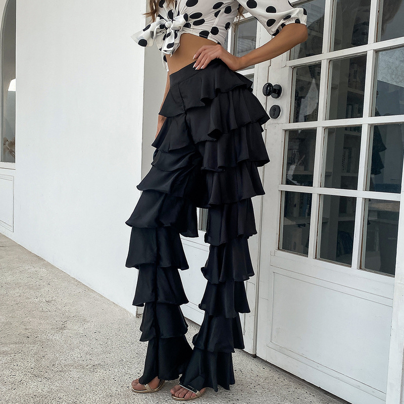 Muslim Women Black Trousers Loose Straight Pants High Waist Ruffled Pants Musulman Turkish Islam Clothing Female Y1126