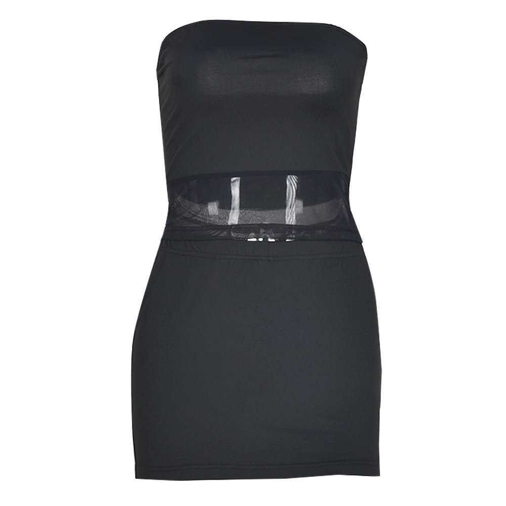 NEONBABIPINK Sexy Women Clothing 2 Pieces Set Summer Dress Bodycon Set Black Mesh Patchwork Tube Top and Mini Skirts N82-BZ15