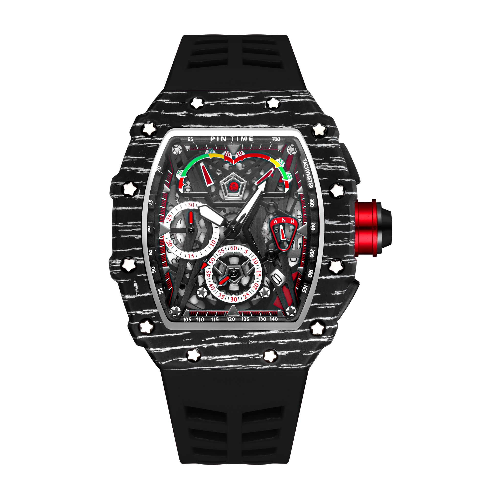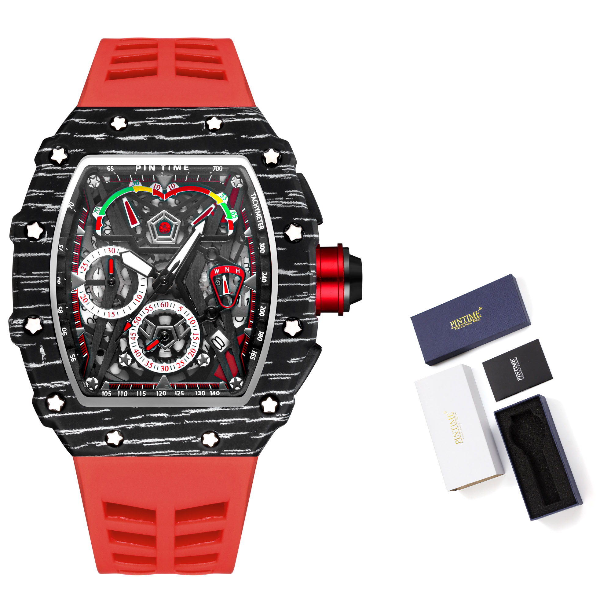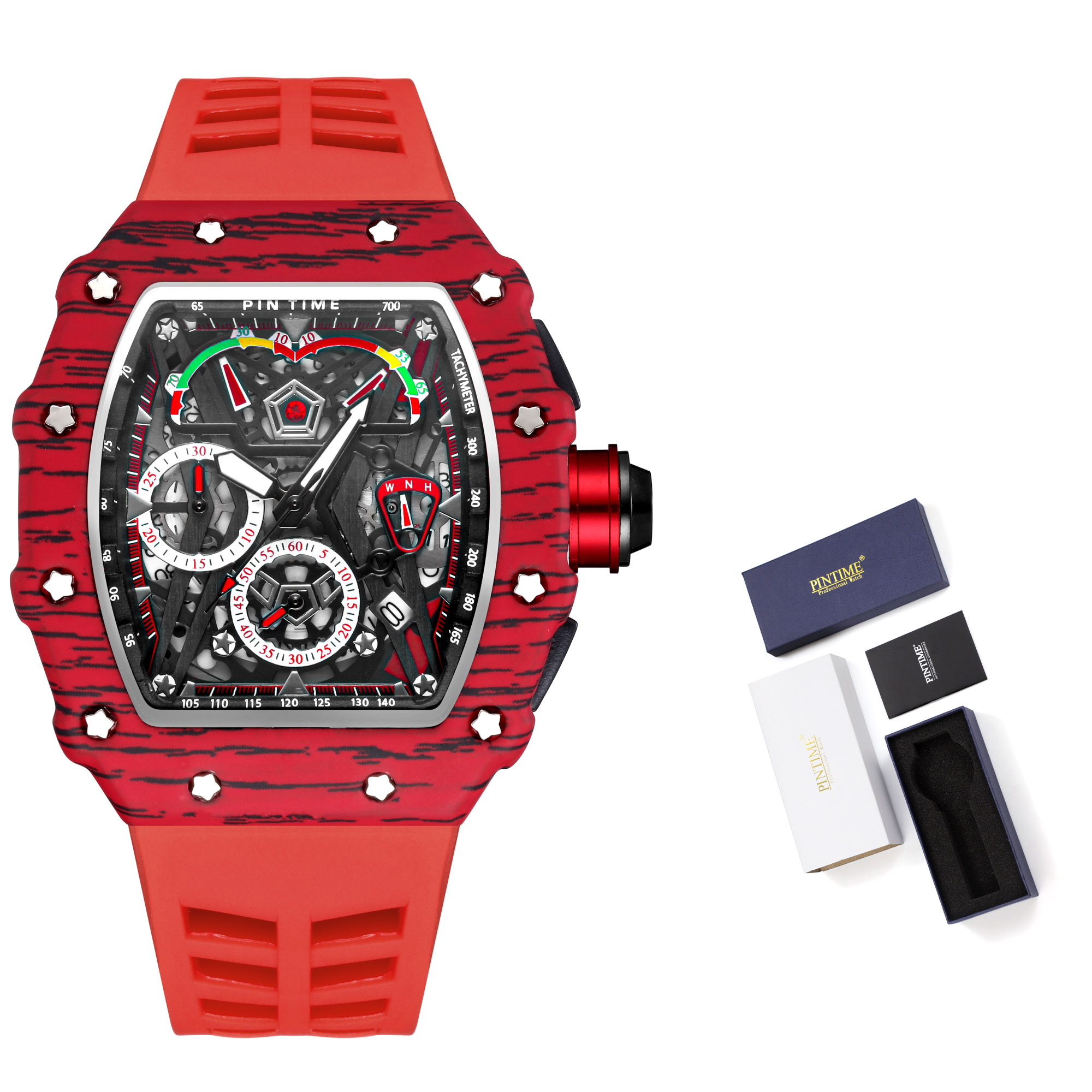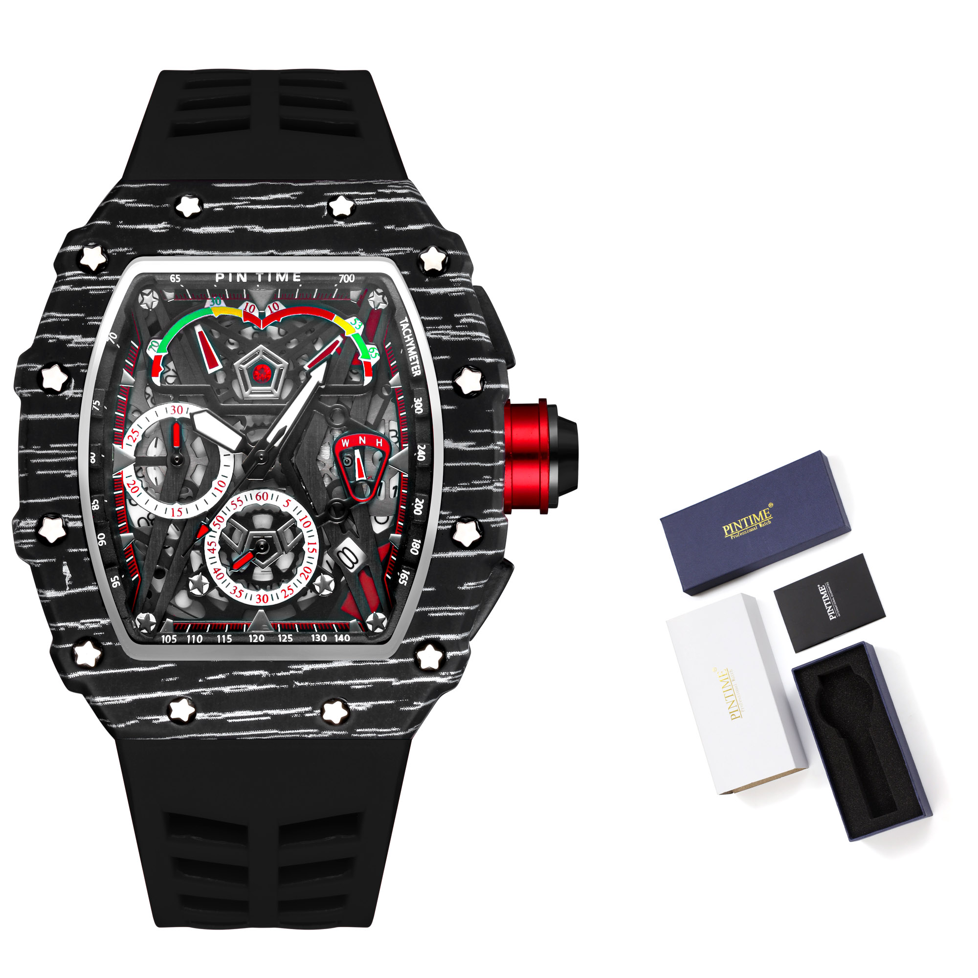 PINTIME Casual Men Sport Rose Gold Watch Chronograph Function Stopwatch Rubber Strap Auto Date Male Wristwatch