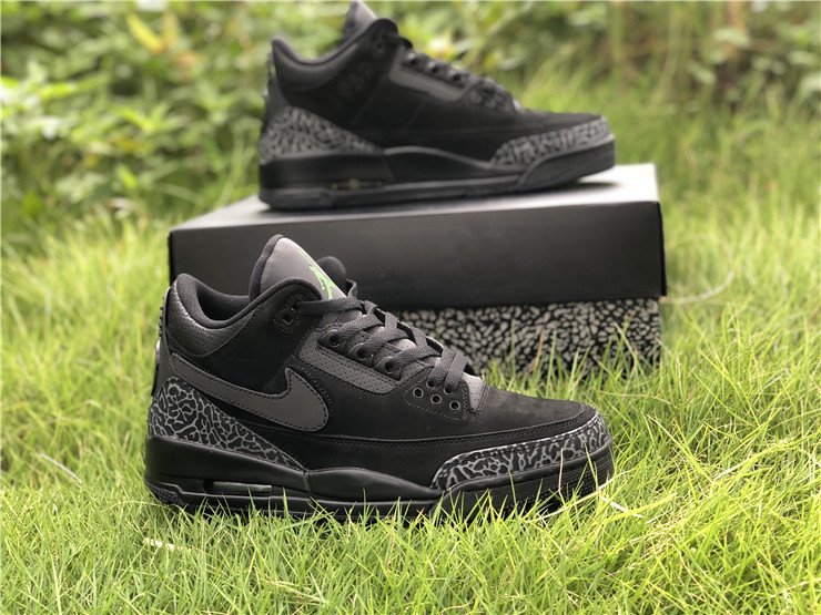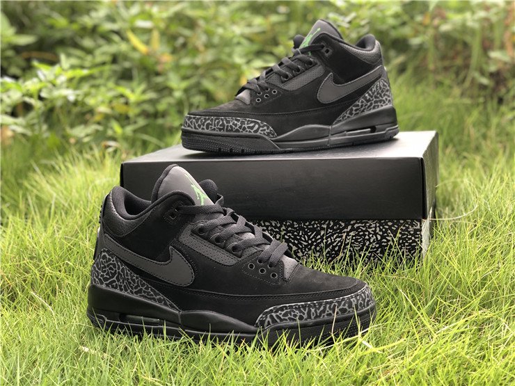 PK AIR JORDAN 3 OREGON BLACK DARK GREY GREEN 3M REFLECTIVE