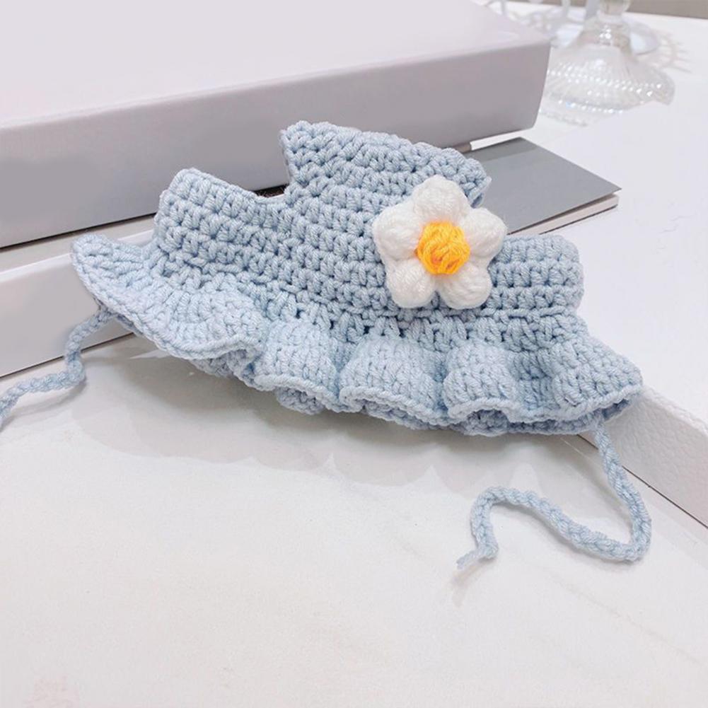 Pet Hat Delicate Hemming Pendant Decor High Elasticity Cute Pet Adjustable Strap Knitted Hat for Party