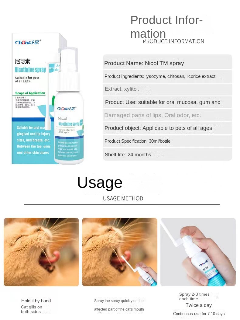 Dog and cat stomatitis spray 30ml cat drooling stomatitis bad breath gum periodontitis ulcer