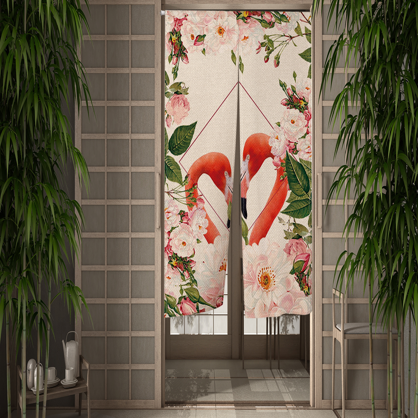 Pink Flamingo Doorway Curtain Creative Flowers Bird Door Curtains Hallway Kitchen Entrance Partition Boho Home Decor