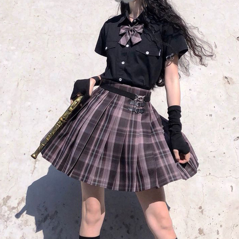 Plaid Skirt Women Pleated Skirt Mini Skirts Womens Pink Black Tennis Skirt Goth Y2k Style Faldas School Girl Uniform
