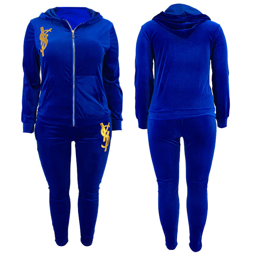 Plus Size Women Two Piece Sets Tops + Pants Matching Set Large Size Velvet Patchwork Women Tracksuit chandals mujer 5XL