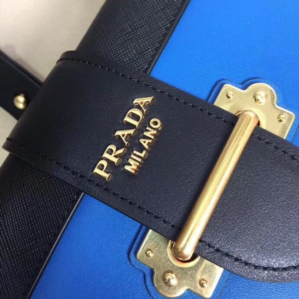Prada Cahier Shoulder Bag In Blue Hydra /Black Leather