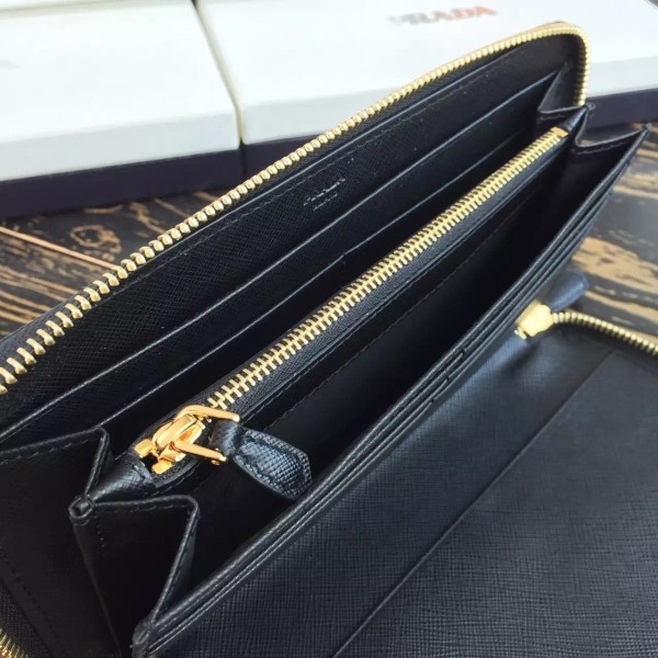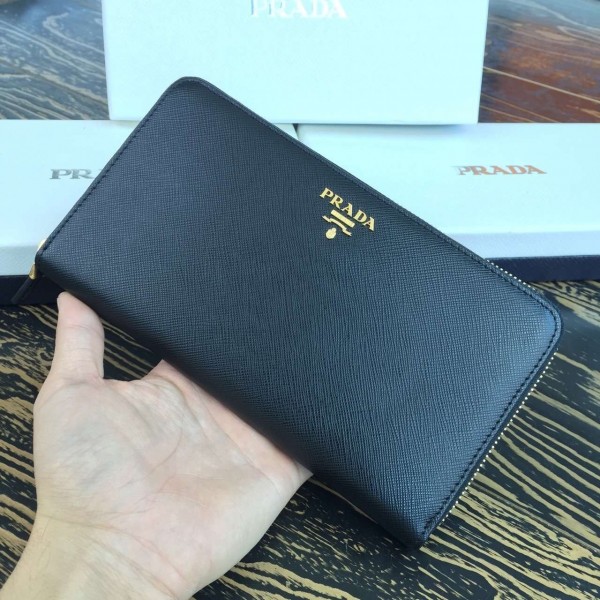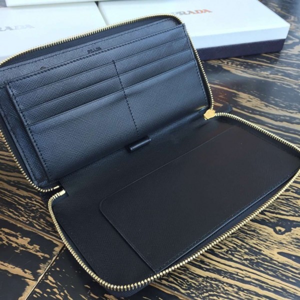 Timelessly elegant in Saffiano leather, Prada’s iconic large Zipped wallet combines pure design with true practicality. It unzips to reveal a variety of convenient features, including multiple credit card slots, a zipped coin compartment and a large pocket for plane tickets, all in an exceptionally space-efficient format.