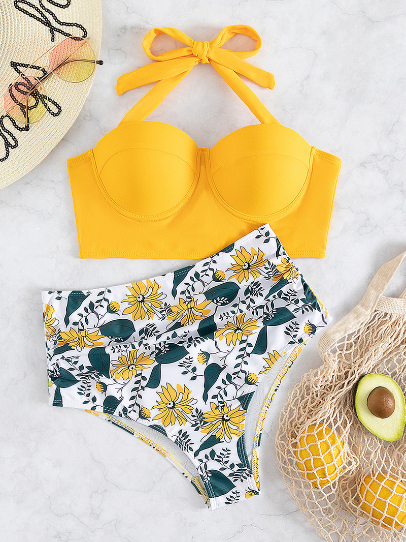 Print Bandage Bikini Swimming Suit For Women Beachwear Swimwear Hard Covered Underwire Swimsuit Woman Bathing Suits