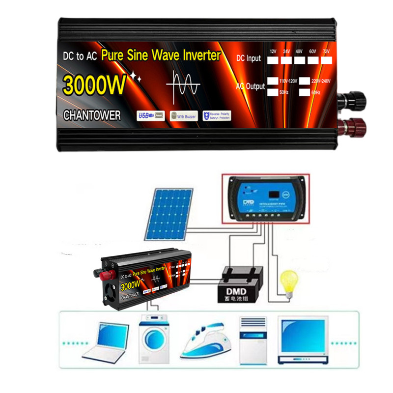 Pure Sine Wave Inverter 12v 220v Solar Inverter 1000W 2000W 3000W 4000W Voltage Transformer Power Converter Panel Car Inverter