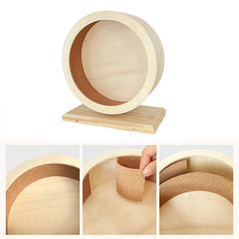1、Fine Workmanship : A safety stand and the closed back prevent your pet from getting stuck, thereby significantly reducing the Hazard of injury. Smooth and exquisite crafts will not damage them. 2、Safe and Sturdy : Made of quality wood material, Eco-friendly, safe to your pet. Widened and thickened wood base greatly avoids reversal through providing reliable and stable mount for the exercise wheel. Multifunctional : The products are not only playing toys, but also is chewing toy for pets, massage their gum and promote dental health, help your hamster exercise more and develop 3、balance ability and Alacrity. Completely noiseless: The wooden wheel is noiseless, when pets play with this wheel, it will not disturb you, providing a funny place for pets to play and rest. Wide Compatibility : Wooden wheel toy is great for hamster, mouse, rats, and African hedgehog and other small furry animals.note: Please allow 2-3cm errors due to manual measurement,pls make sure that you do not mind before you order. Due to the difference between different monitors, the picture may not reflect the actual color of the item.