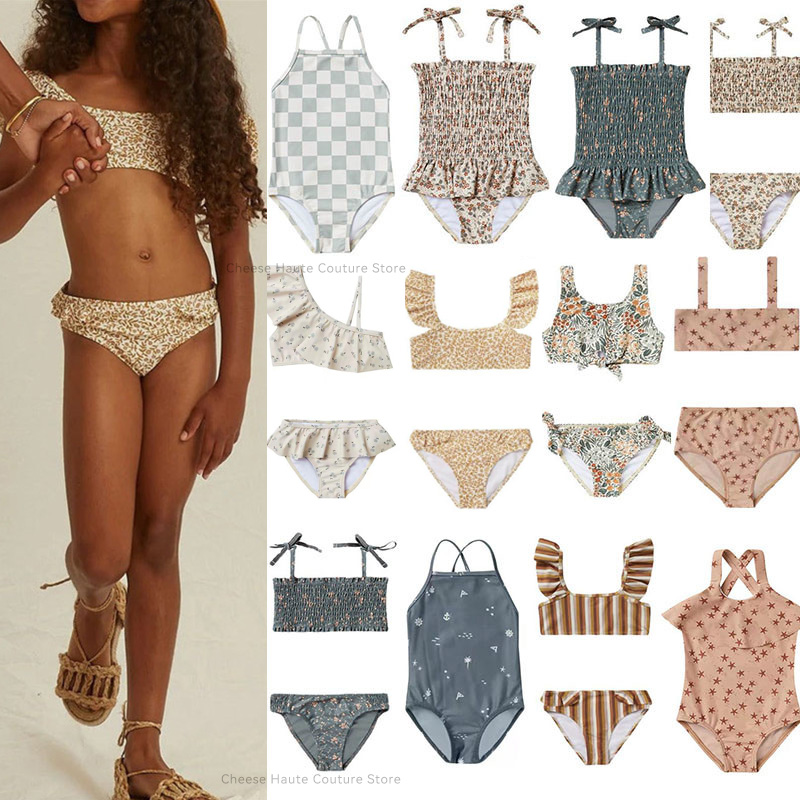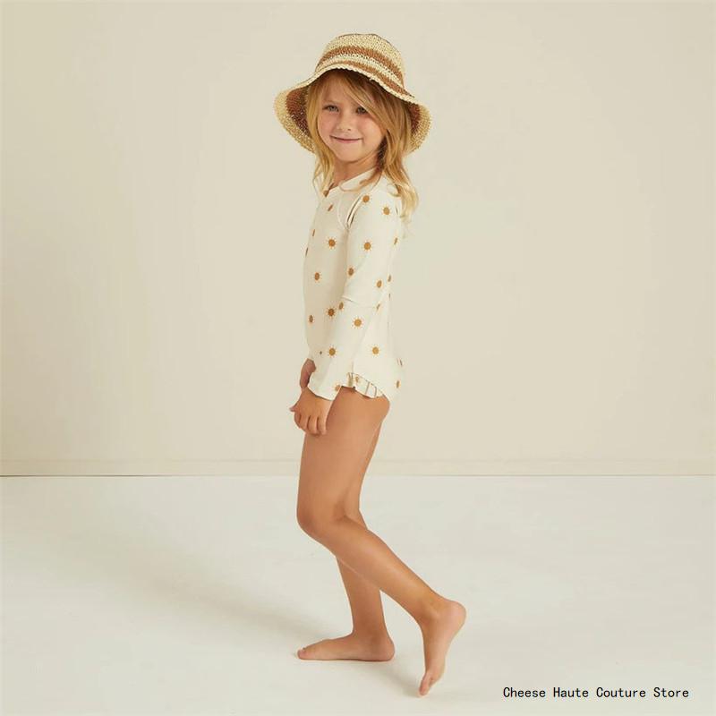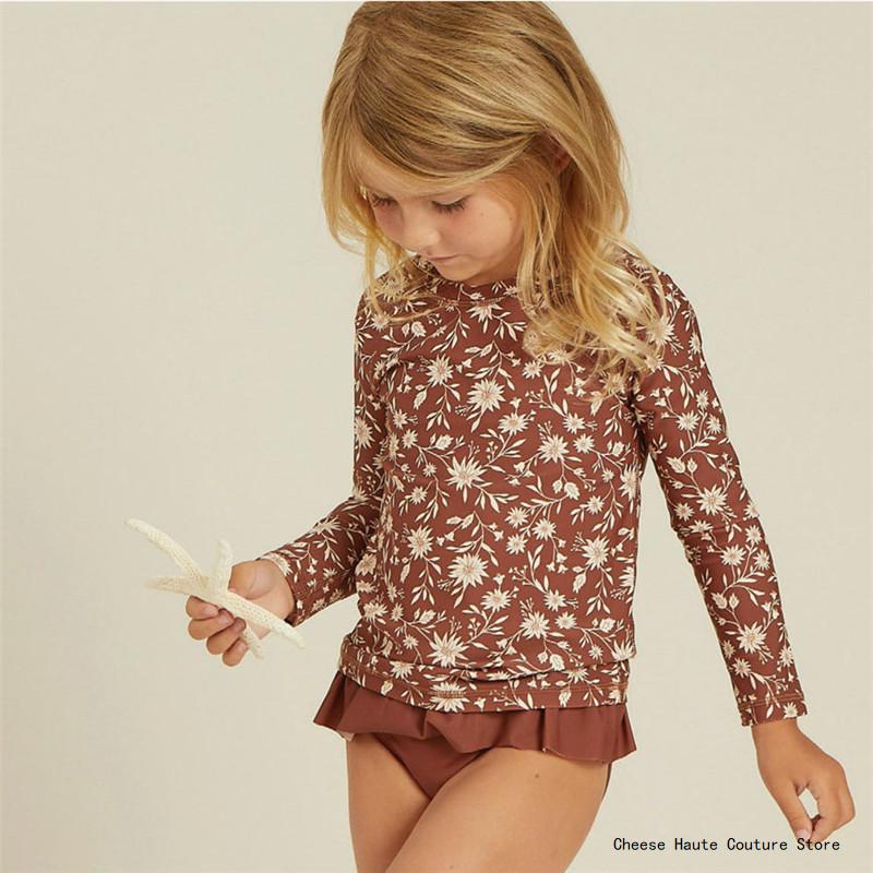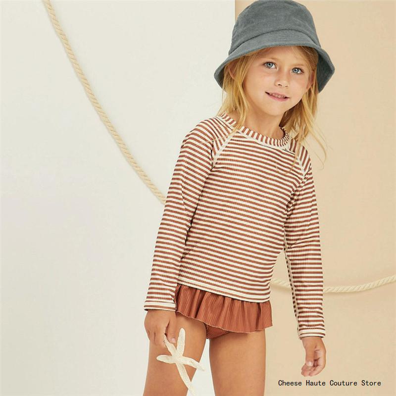 RC Baby Girls Swimwears 1-12y Kids Long Sleeve Sunscreen Floral Toddler Swimming Swimsuit Striped Bikini Suits