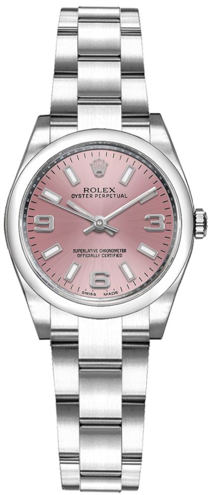 26mm = 1″ Case, 6″ Adjustable Bracelet Inlet Size: 13mm Fixed Bezel Luminescent Hands & Hour Markers Screw Down Crown & Case Back 904L Oystersteel Stainless Steel Oysterclasp Deployment BuckleMovement:Automatic