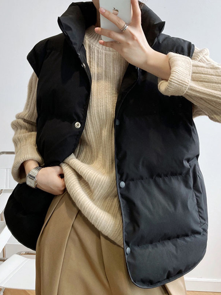 SHENGPALAE Contton Vest Women's Autumn Stand Collar Single Breasted Sleeveless Loose Solid Color Waistcoat
