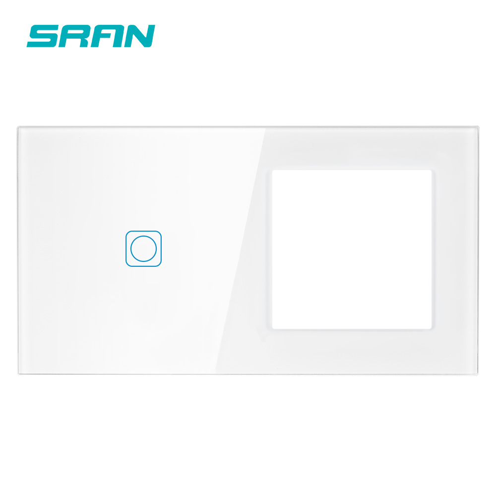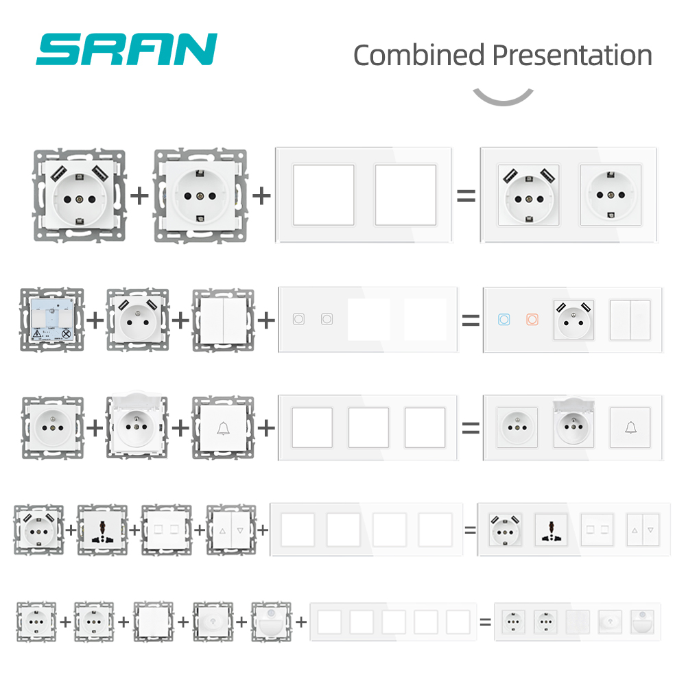 SRAN F6 82mm Series White Module and Crystal Tempered Glass Panel, 16A 250V Electrical sockets and switches