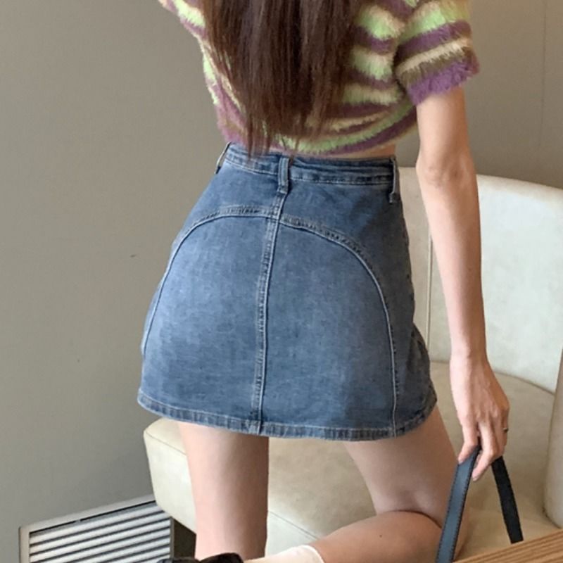 STSVZORR spring and summer large size slim bag hip denim shorts skirt design sense strapping skirt lining