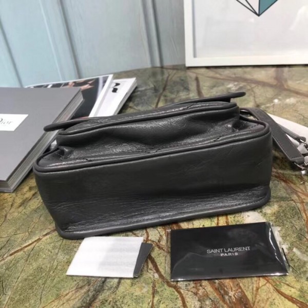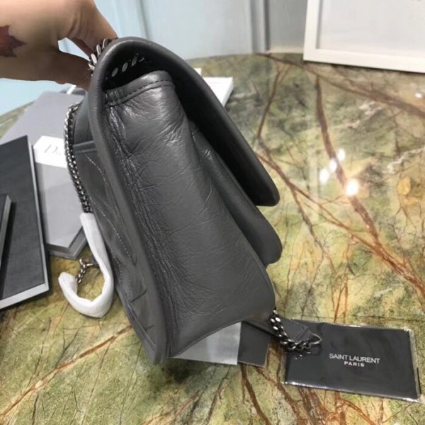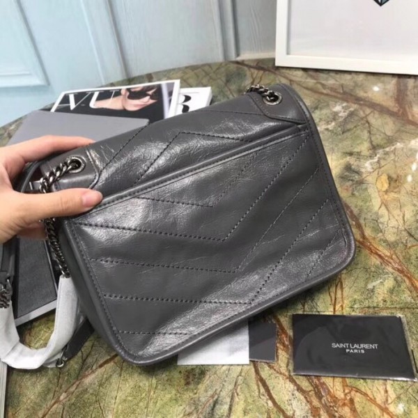 Saint Laurent Baby Niki Chain Bag In Storm Gray Crinkled Leather