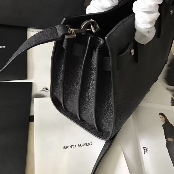 Saint Laurent Baby Sac de Jour Souple Bag In Black Grained Leather