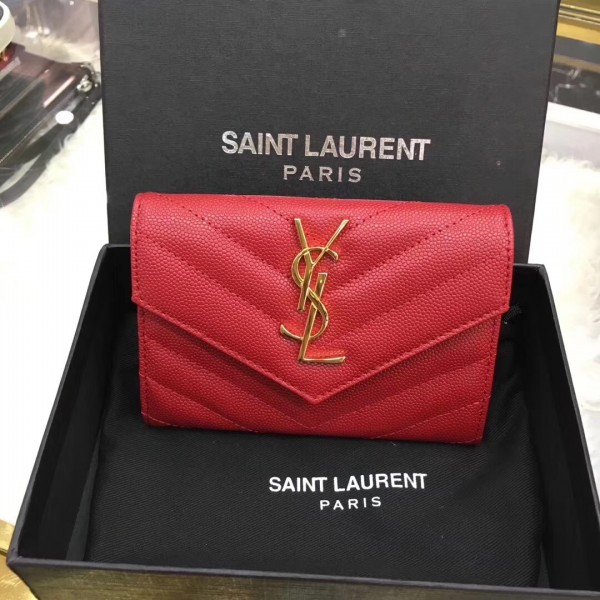 Saint Laurent Small Envelope Wallet In Red Leather