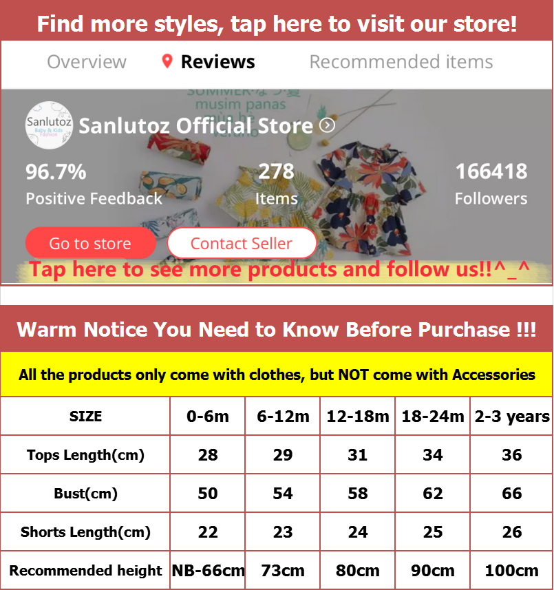 2-3 years Tops Length 36(cm) Bust 66(cm) Shorts Length 26(cm)