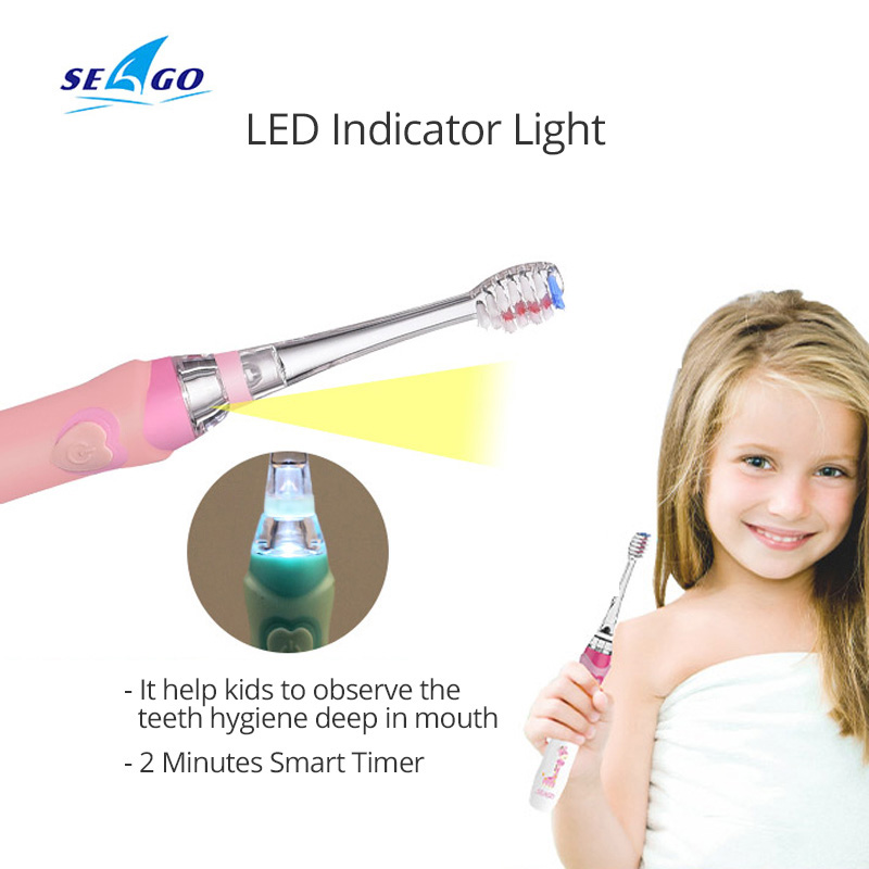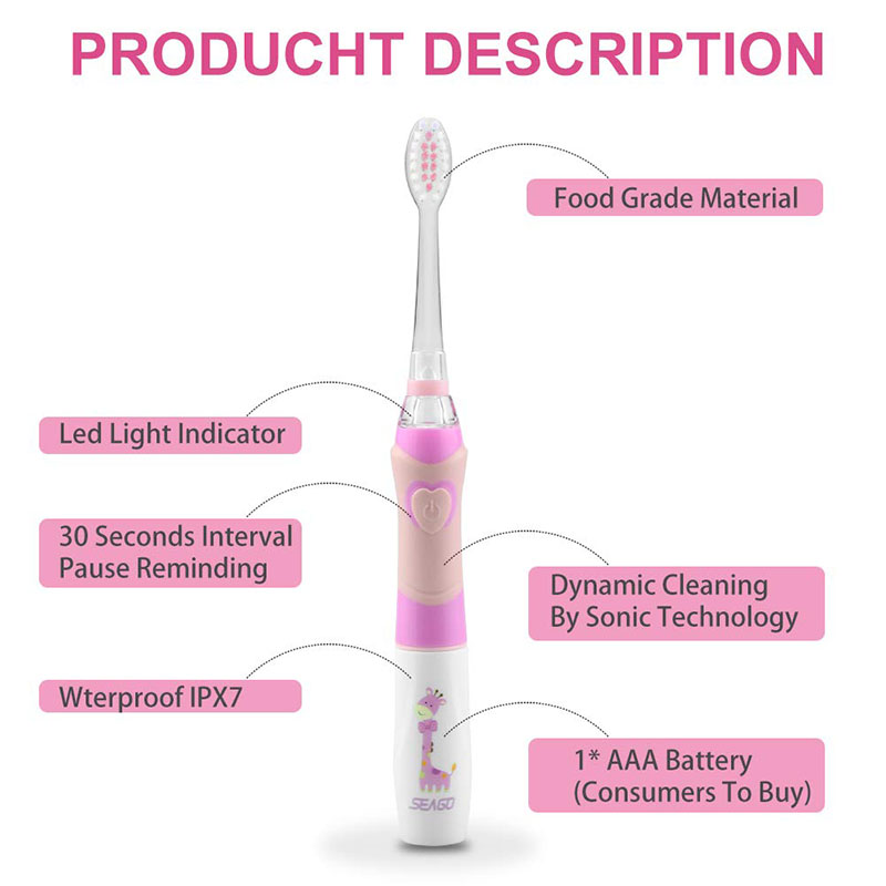 Seago Kid's Sonic Electric Toothbrush Battery Powered Colorful LED Smart Timer Tooth Brush Replaceable Dupont Brush Heads SG EK6