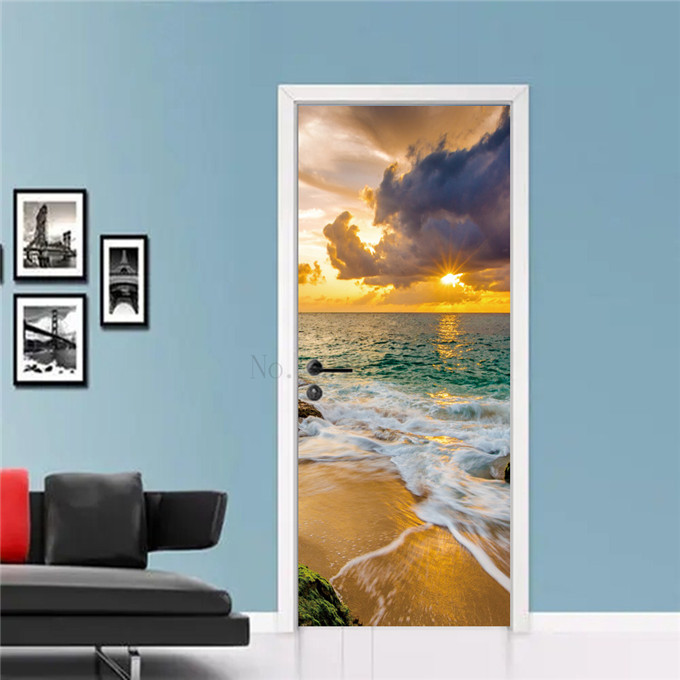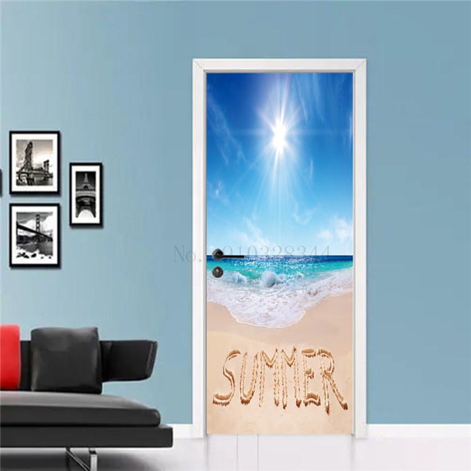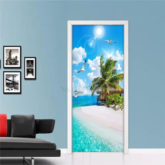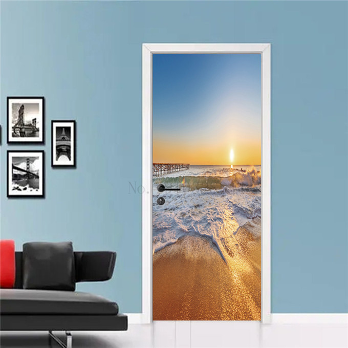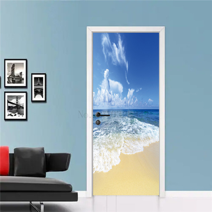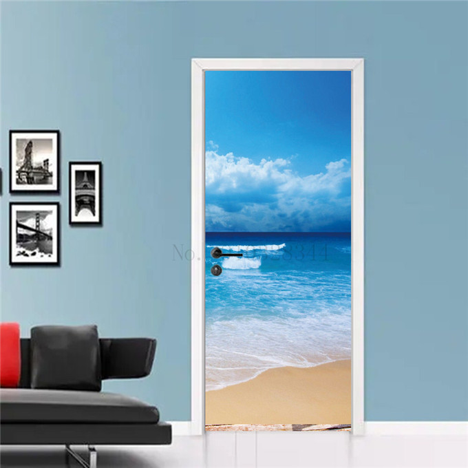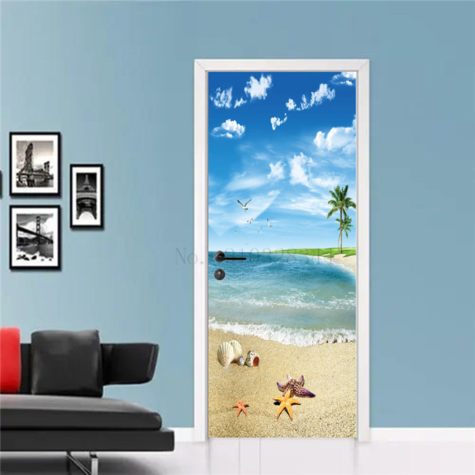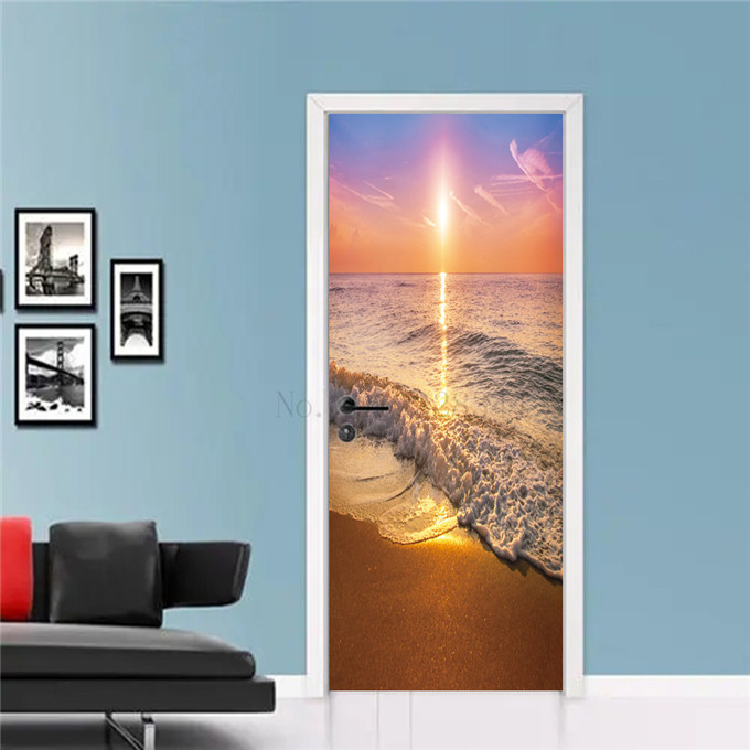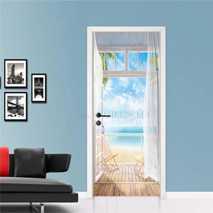 Seascape Beach Door Stickers Bedroom Bathroom Living Room 3d Decoration Wallpaper Self-adhesive Vinyl Poster Window Glass Mural