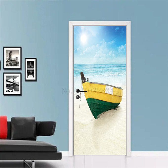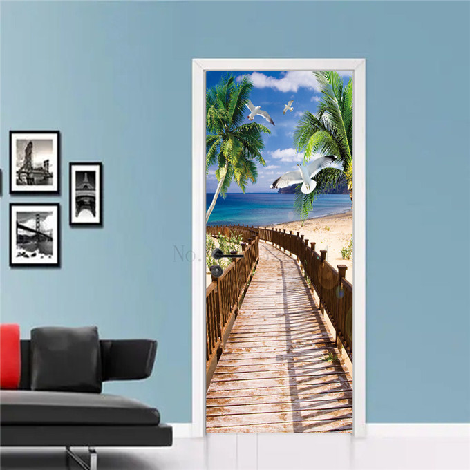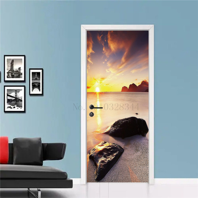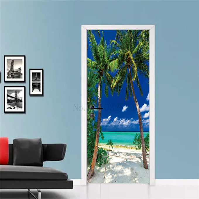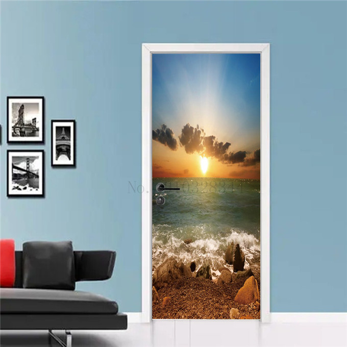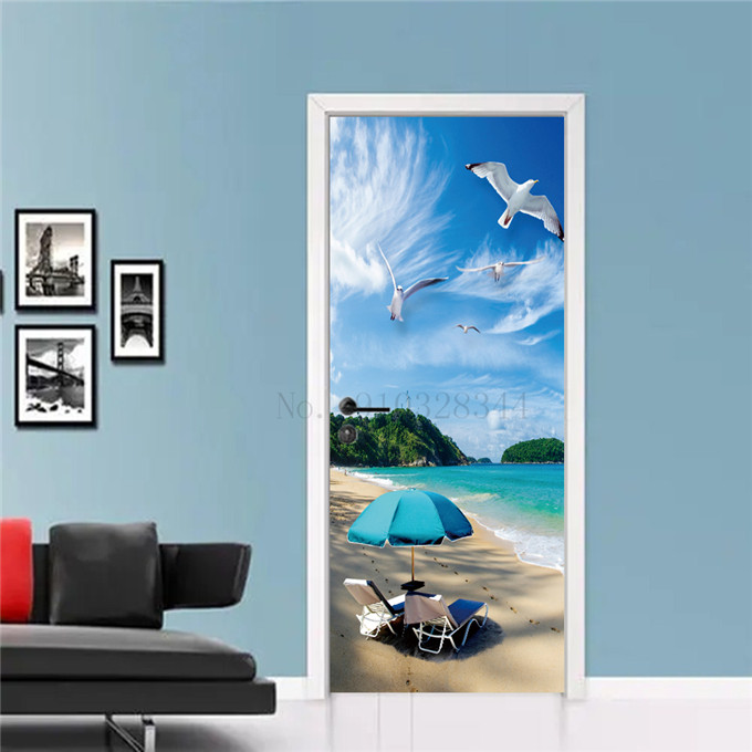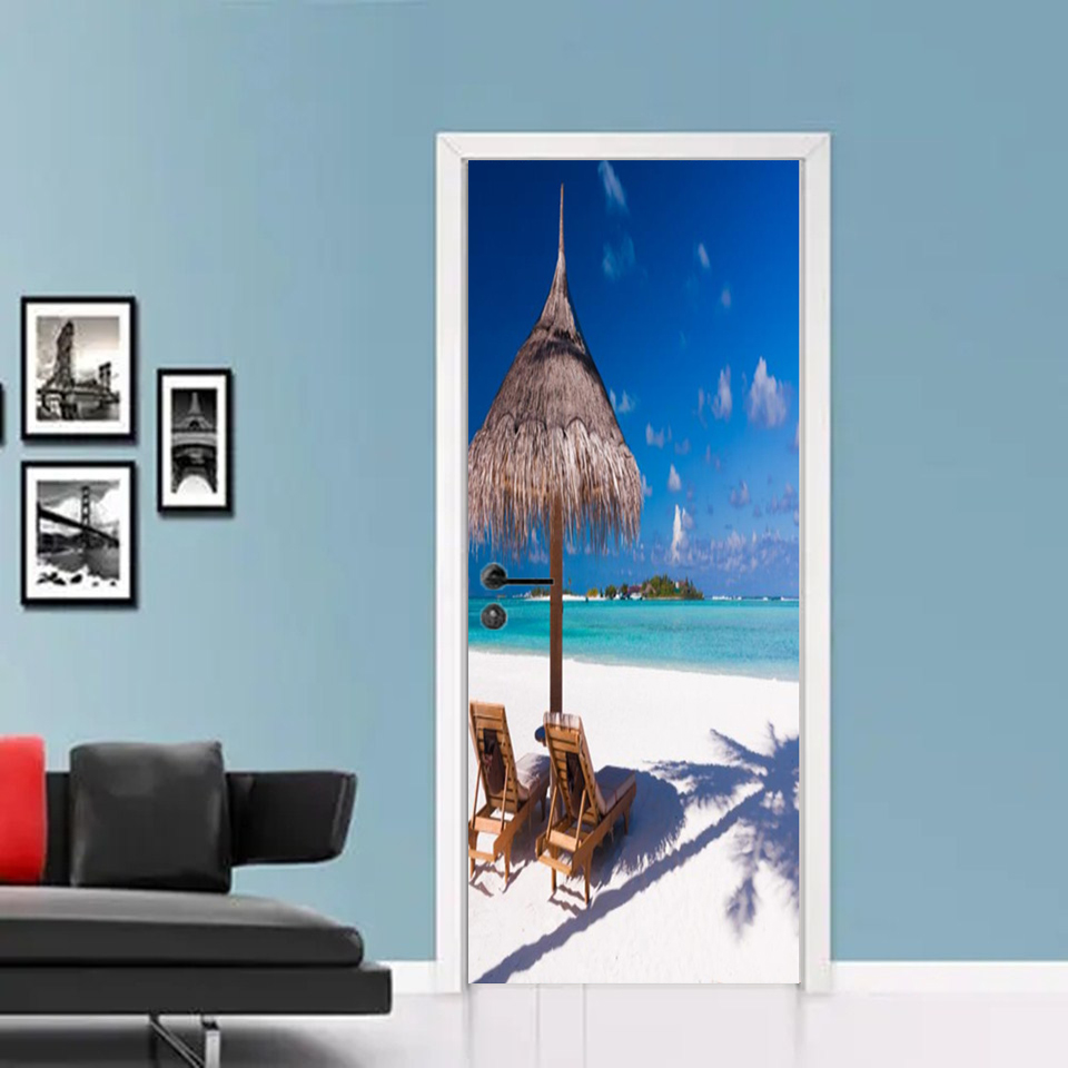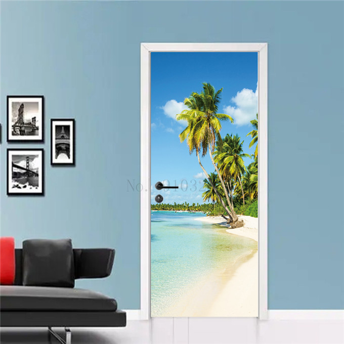 Seascape Beach Door Stickers Bedroom Bathroom Living Room 3d Decoration Wallpaper Self-adhesive Vinyl Poster Window Glass Mural