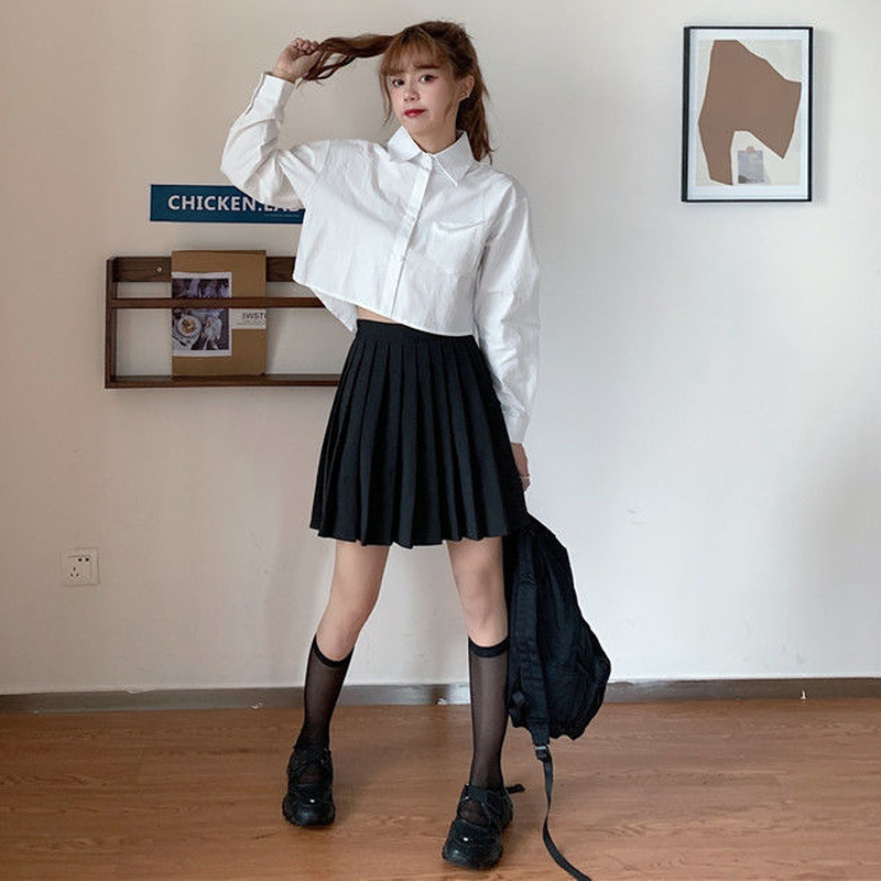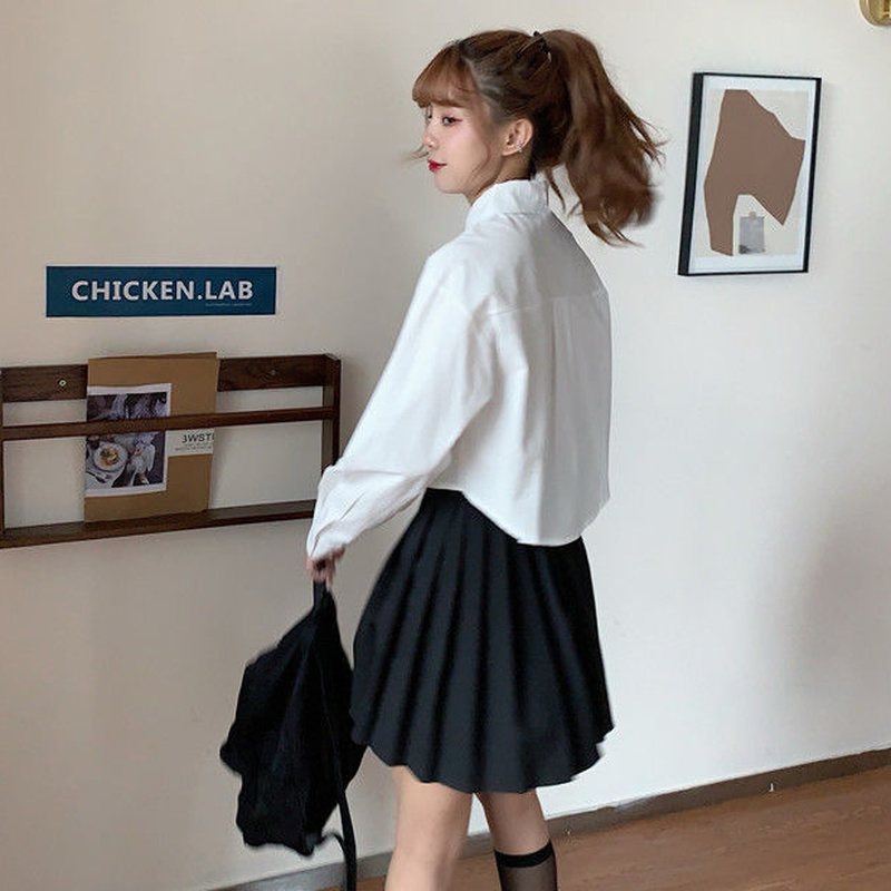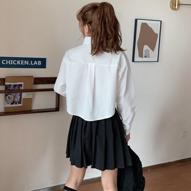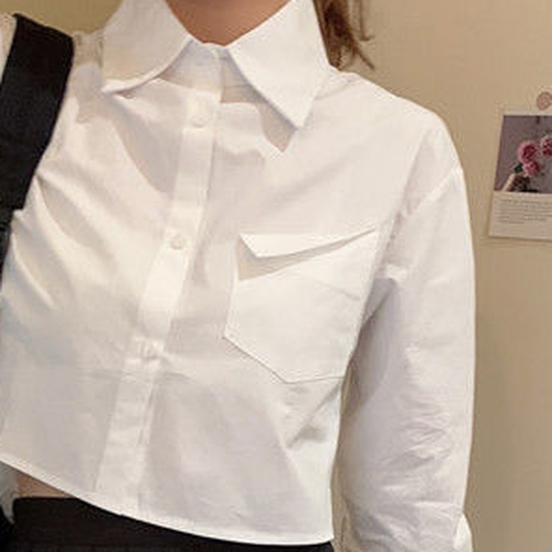 Shirts Women Cropped Tops Slim White Clothing Long Sleeve College Pockets Daily BF Casual Solid Simple Design Stylish All-match