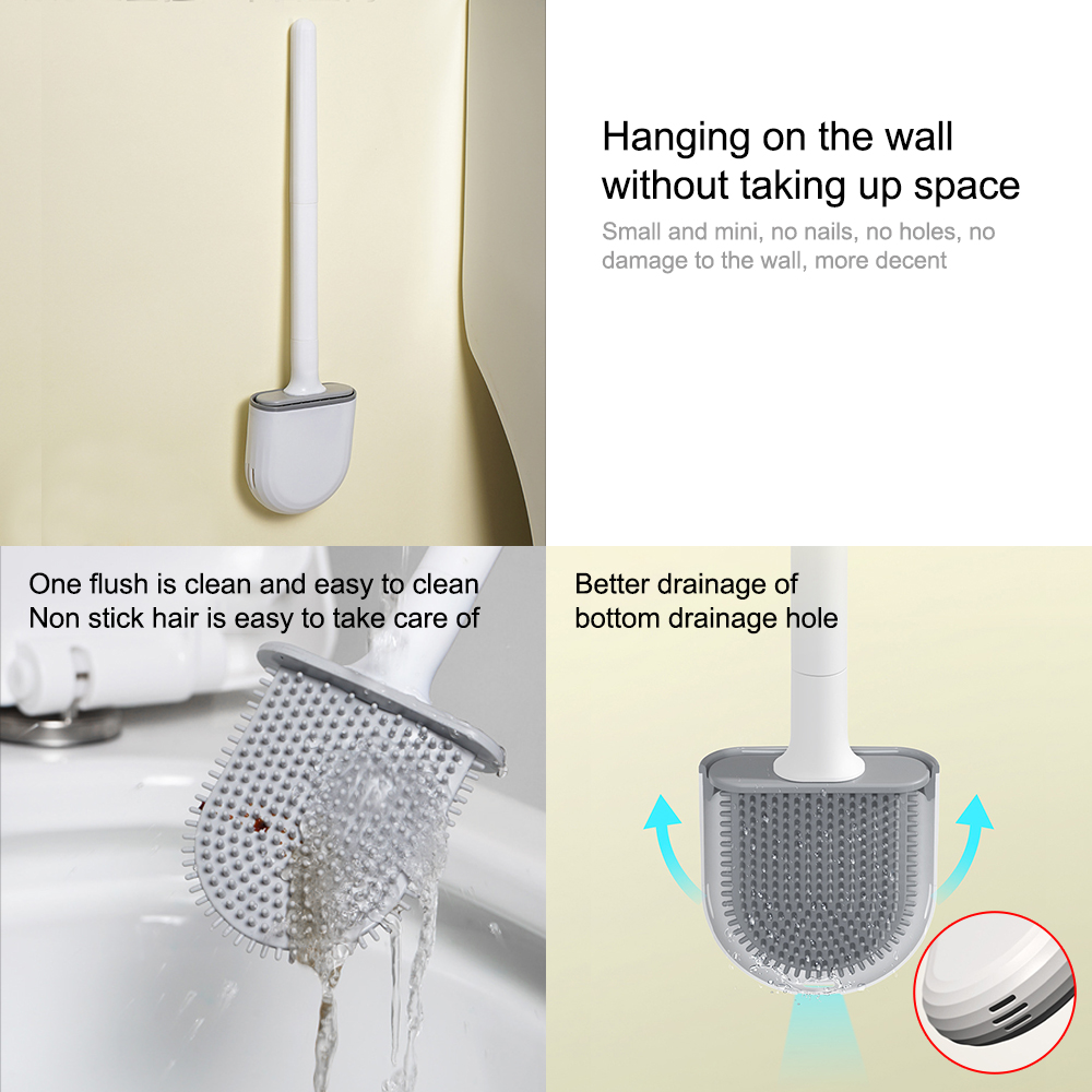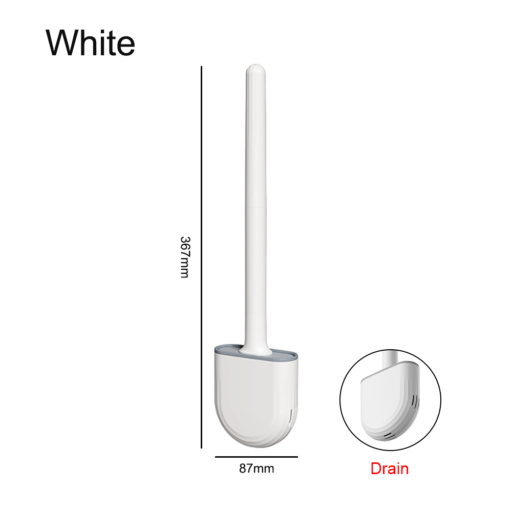There are two types of toilet brushes: drain type and undrain type. The toilet brush adopts a silicone brush head, the stains will not stick to the toilet brush, and it is easy to clean. The soft brush head can clean the toilet 360°, or the corner of the bathroom. Drain model prevents mildew on silicone brush hair