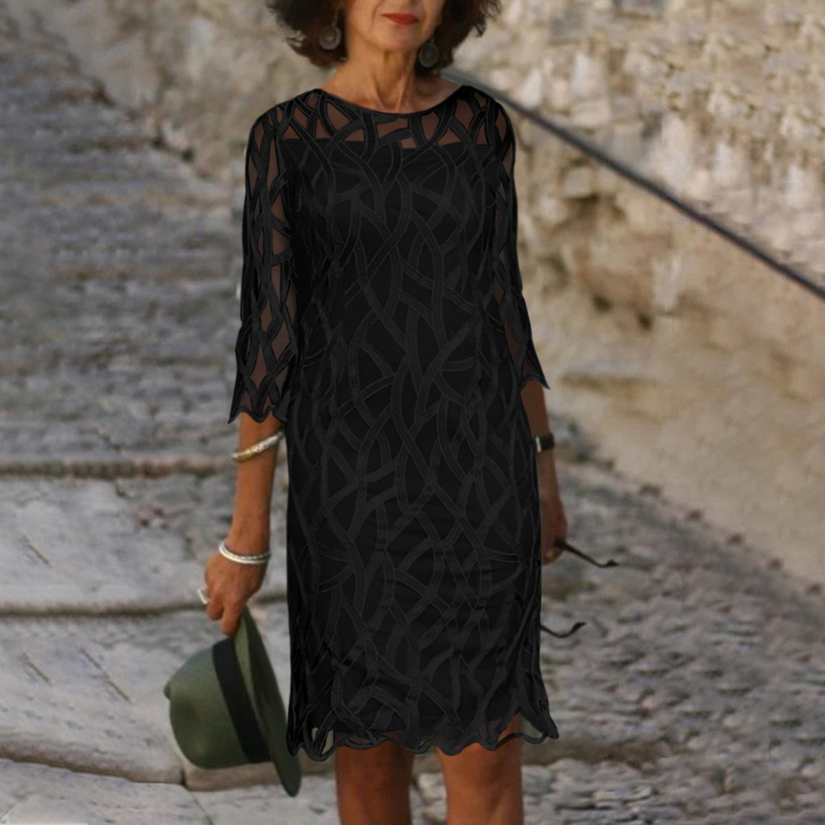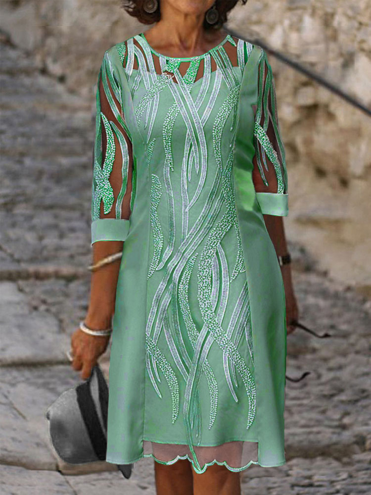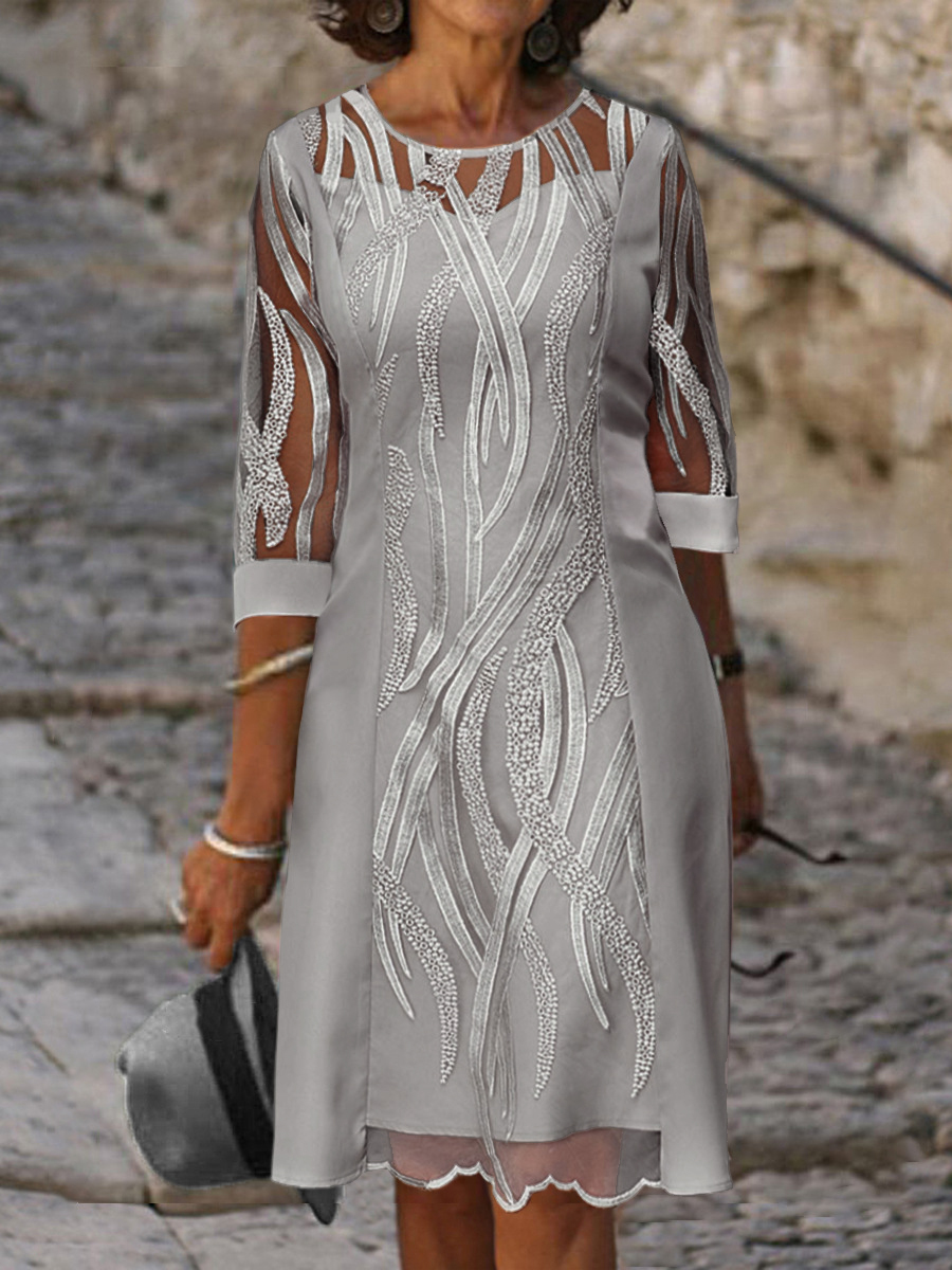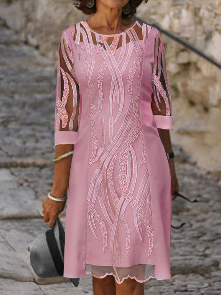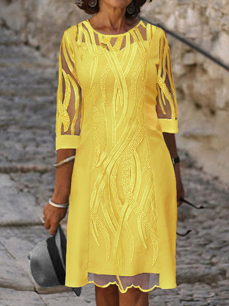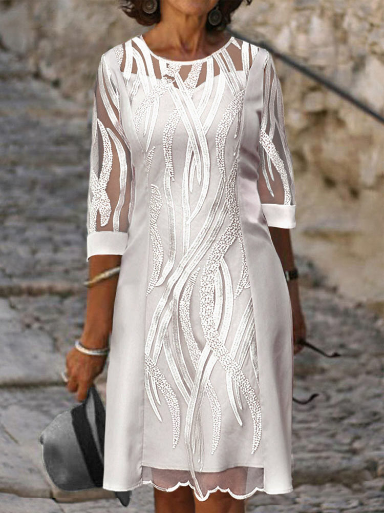 Spring Summer Half Sleeve Casual Dress Sexy See-through Patchwork Lace Party Dress Women O Neck Loose Pullover Dress
